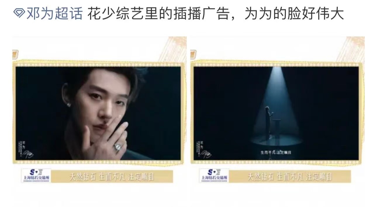 这个天然钻石也太宠代言人邓为了吧!!!不仅随处可见的地广还有各类app开屏,还有花少综艺tvc !们代言人数不胜数的刷脸,真的是随处可见的邓为天然钻石了💎这次双旦活动居然还有新的视频物料,并且邀请了粉丝一起前去打卡!代言人排面这一块还得是SDE&NDC给的足啊