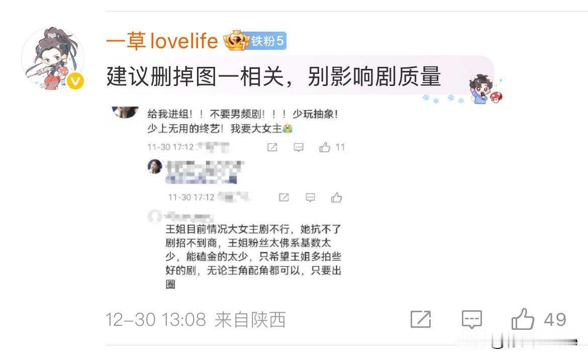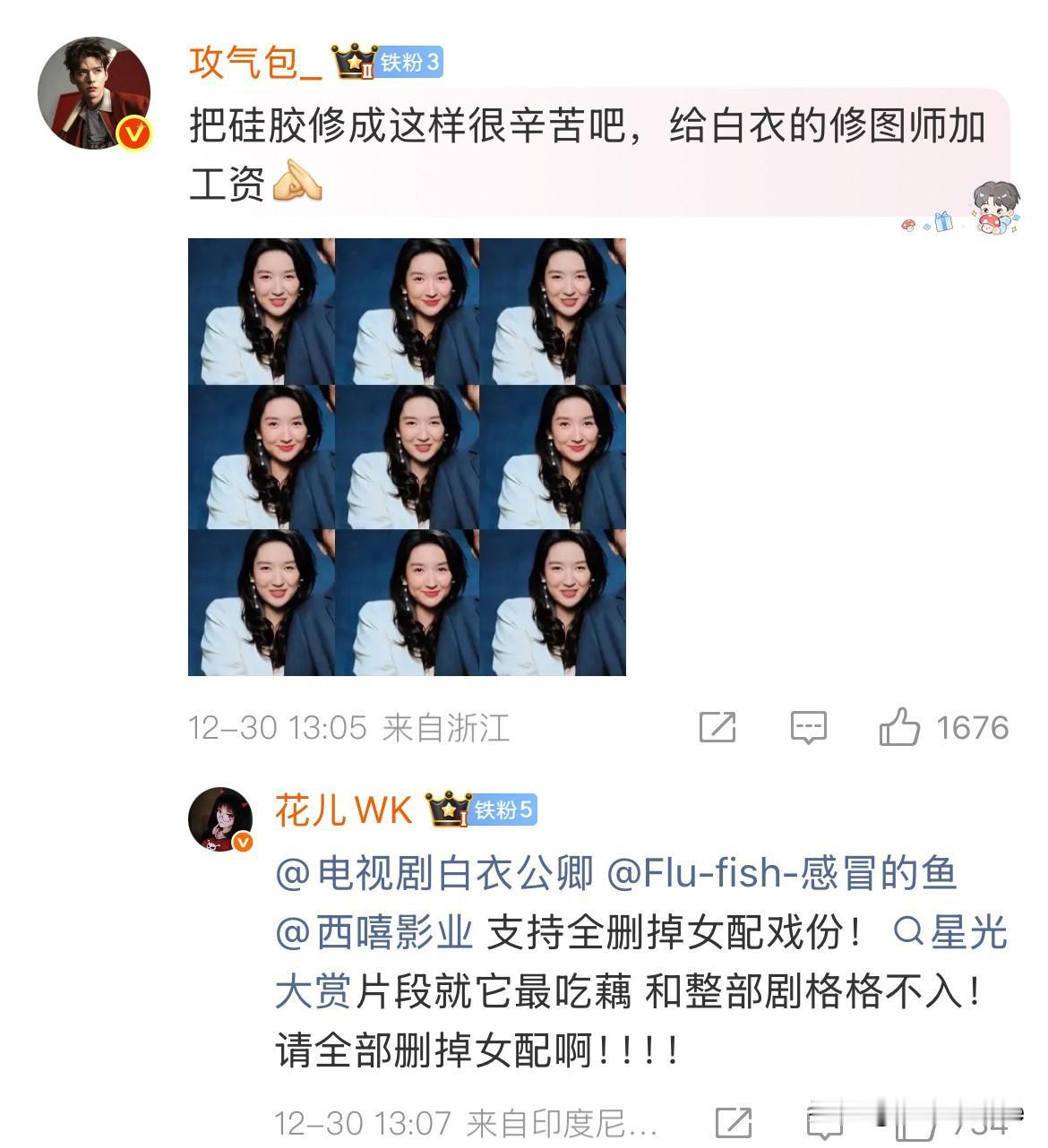 12月30日,龚俊粉丝建议《白衣公卿》剧方删掉王玉雯所有戏份!剧刚杀青,男主粉丝