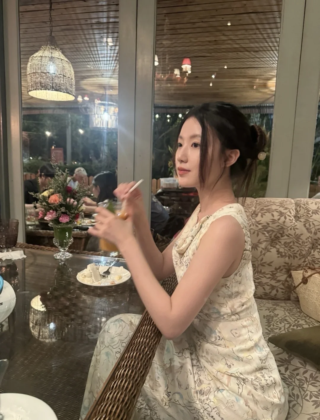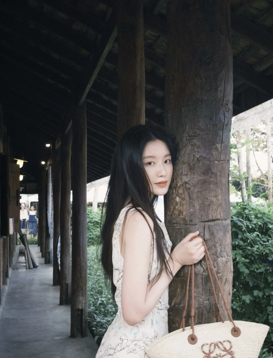 叶舒华的私服审美真的绝! 一袭Chanel复古碎花裙,慵懒又精致,草编包和凉鞋的搭配还透着点度假的随性,把法式浪漫和东方清冷感融合得刚刚好