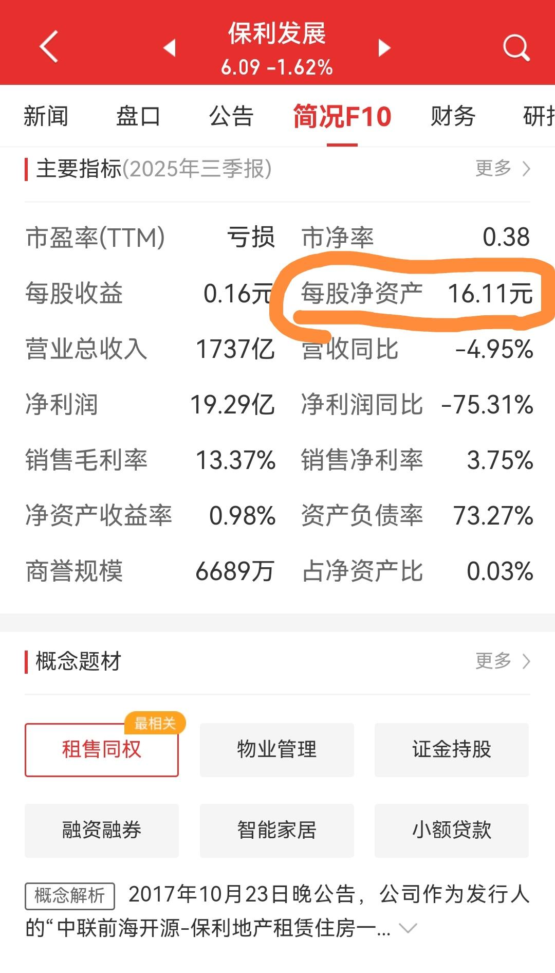 保利发展:股价仅为净资产38%,价值洼地还是行业困局? 在A股房地产板块持续承压的背景下,龙头房企保利发展(600048.SH)的估值指标正引发市场强烈关注。截至最新数据,其每股净资产高达16.11元,而当前股价却仅徘徊于6.09元左右,市净率(PB)低至约0.38倍——这意味着投资者仅需支付不到四折的价格,即可获得公司账面上的每一元净资产。