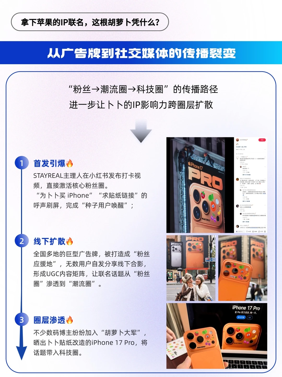 🔵从主理人打卡唤醒核心粉丝,到线下广告牌变身应援地、数码博主跨界跟风,卜卜的传播裂变横跨粉丝圈、潮流圈与科技圈。