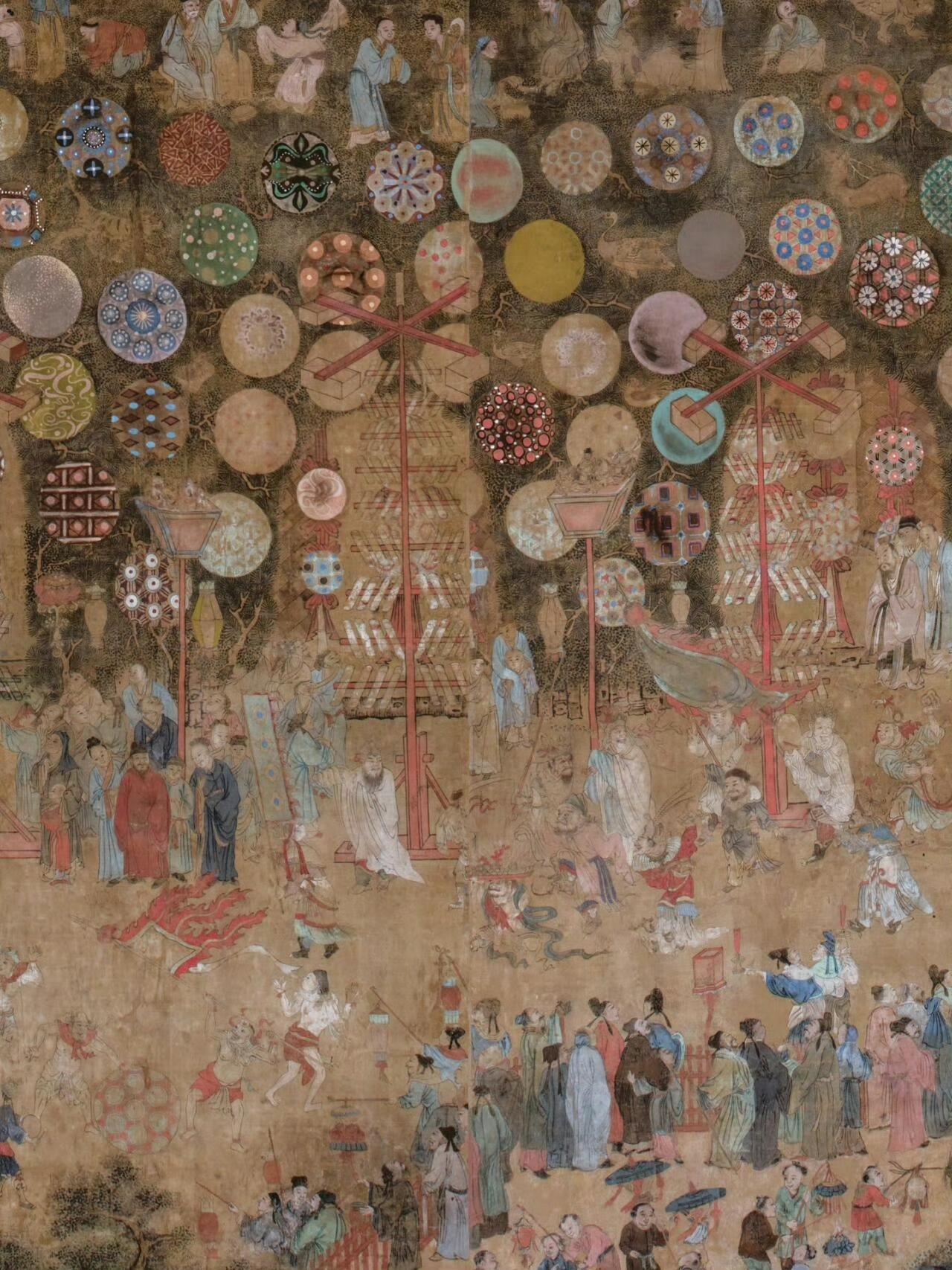🌹诗词|处世如大梦,悟者能有几。——宋·李纲《题陈氏隐圃佚老堂二十韵》 【释义】世态万象犹如浩渺梦境,豁然彻悟者,寥若晨星。 🌹赏画|明人画六条屏《元宵图》 “彩结鳌山,纱笼银烛”,这应是古代元宵时皇帝为与民同乐建造的“鳌山灯”。鳌,是传说里能背负大山的海龟。鳌山灯,就是堆成巨鳌形状的花灯。古籍有记:“禁中尝令作琉璃灯山,其高五丈,人物皆用机关活动,结大彩楼贮之。又于殿堂梁栋窗户间为涌壁,作诸色故事,龙凤水,蜿蜒如生,遂为诸灯之冠”,人观之,如游蓬莱仙境。 传统文化 绘画 古诗词
