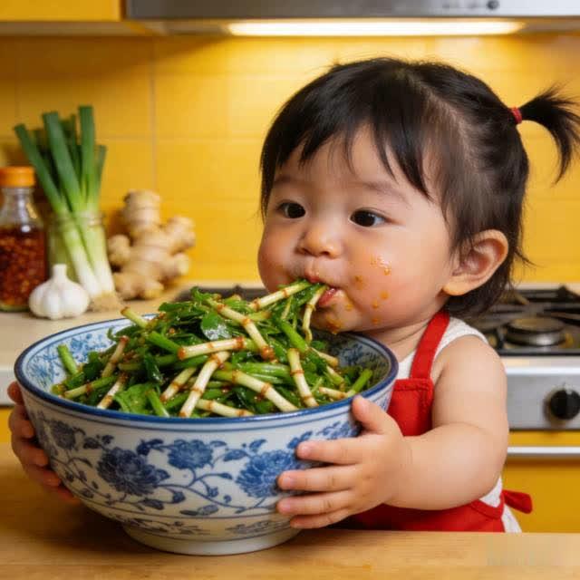 萌娃抱大碗狂炫折耳根:童真里藏着最纯粹的美食热爱 刷到萌娃抱着比头还大的碗,