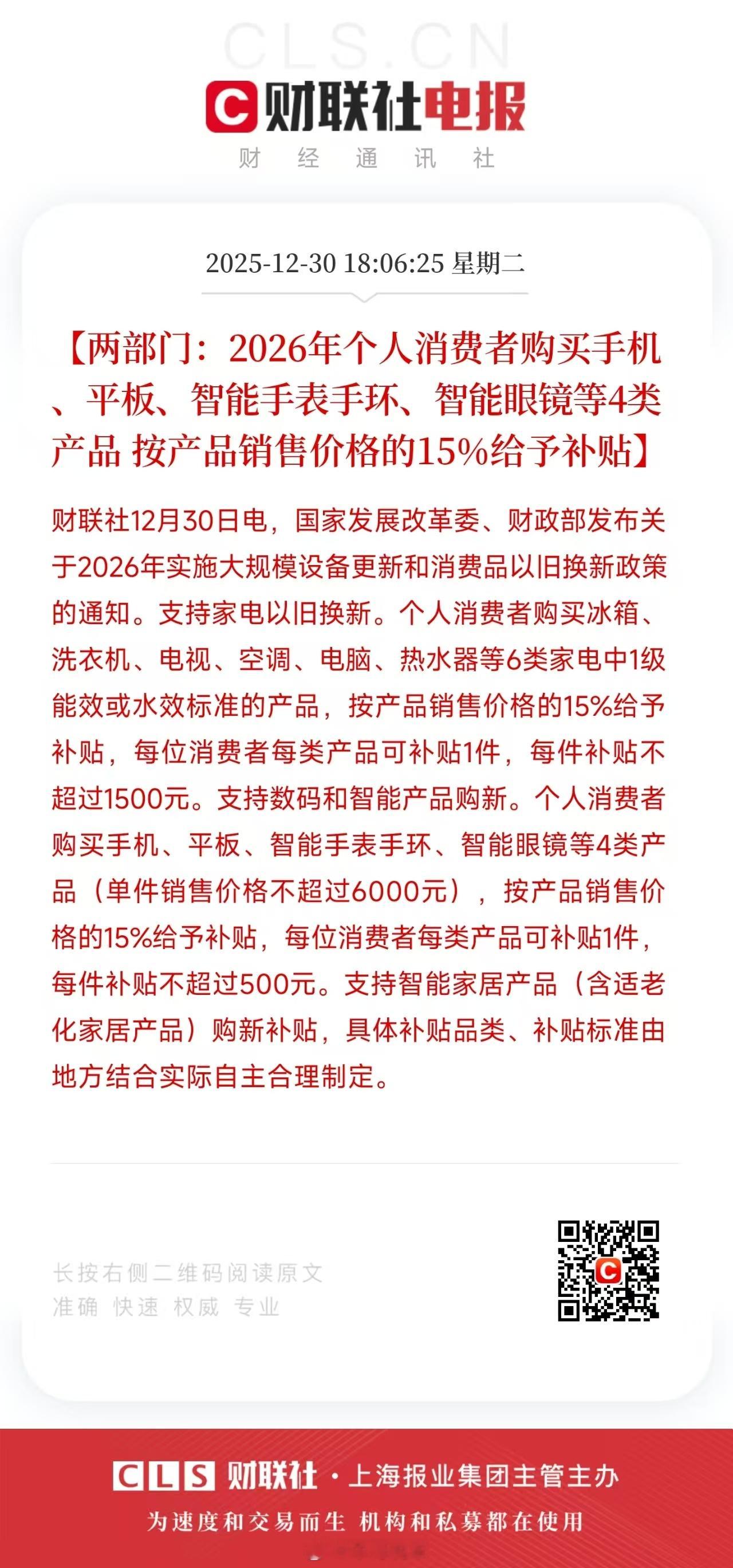 26年购买数码,汽车,补贴将继续!可能又会是补贴力度最大的一年