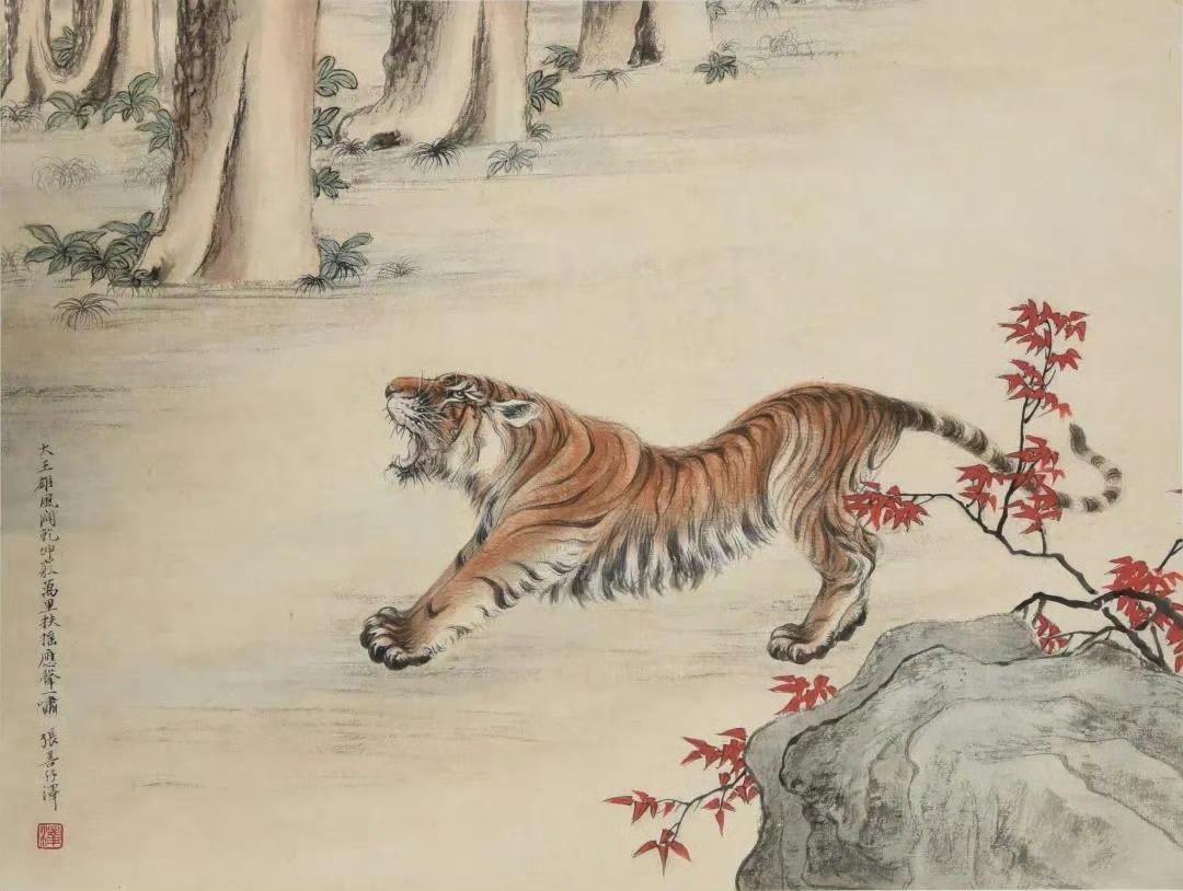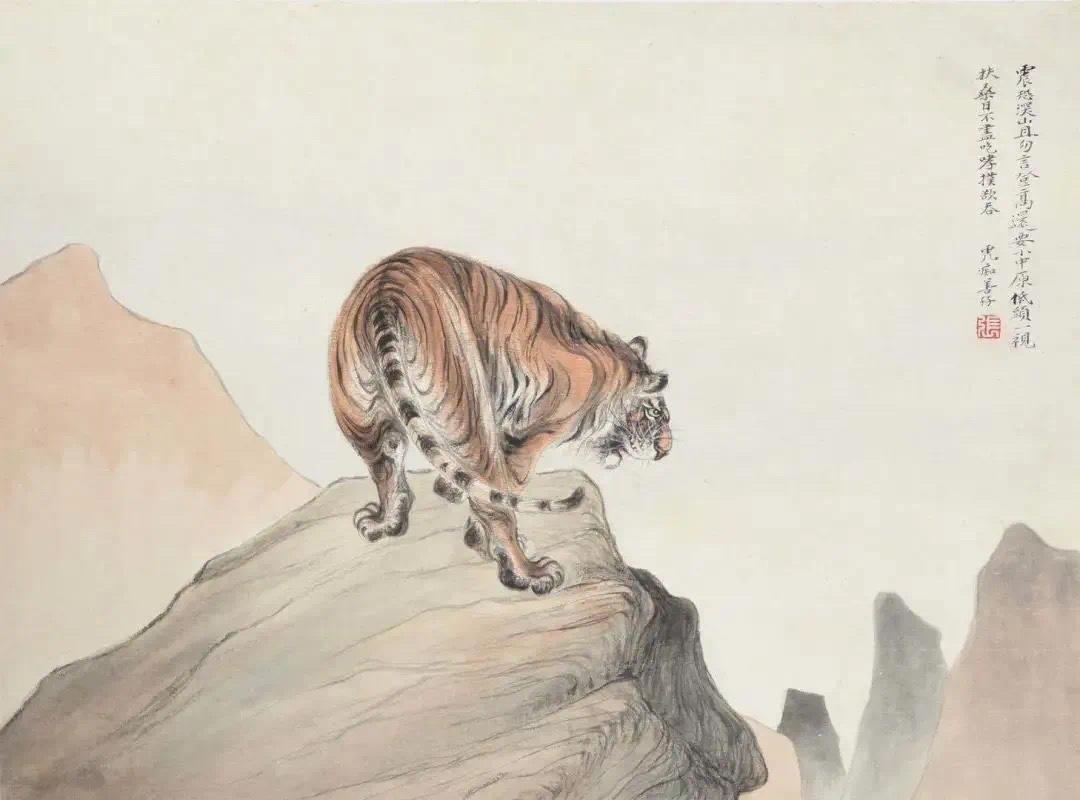 🌹诗词|方寸怡怡无一事,粗裘粝食地行仙。——朱·黄公度《道间即事》 【释义】内心悠然自得,没有忧虑生活简朴自在,像神仙一样。 🌹赏画|张善孖《山君图册》 此套《山君图册》共十二开,造型准确多样,用笔设色精细,布景各具意境,是张氏虎画中的难得精品。 张善孖:现代名画家,张大千的二哥,画虎大师。传统文化 绘画