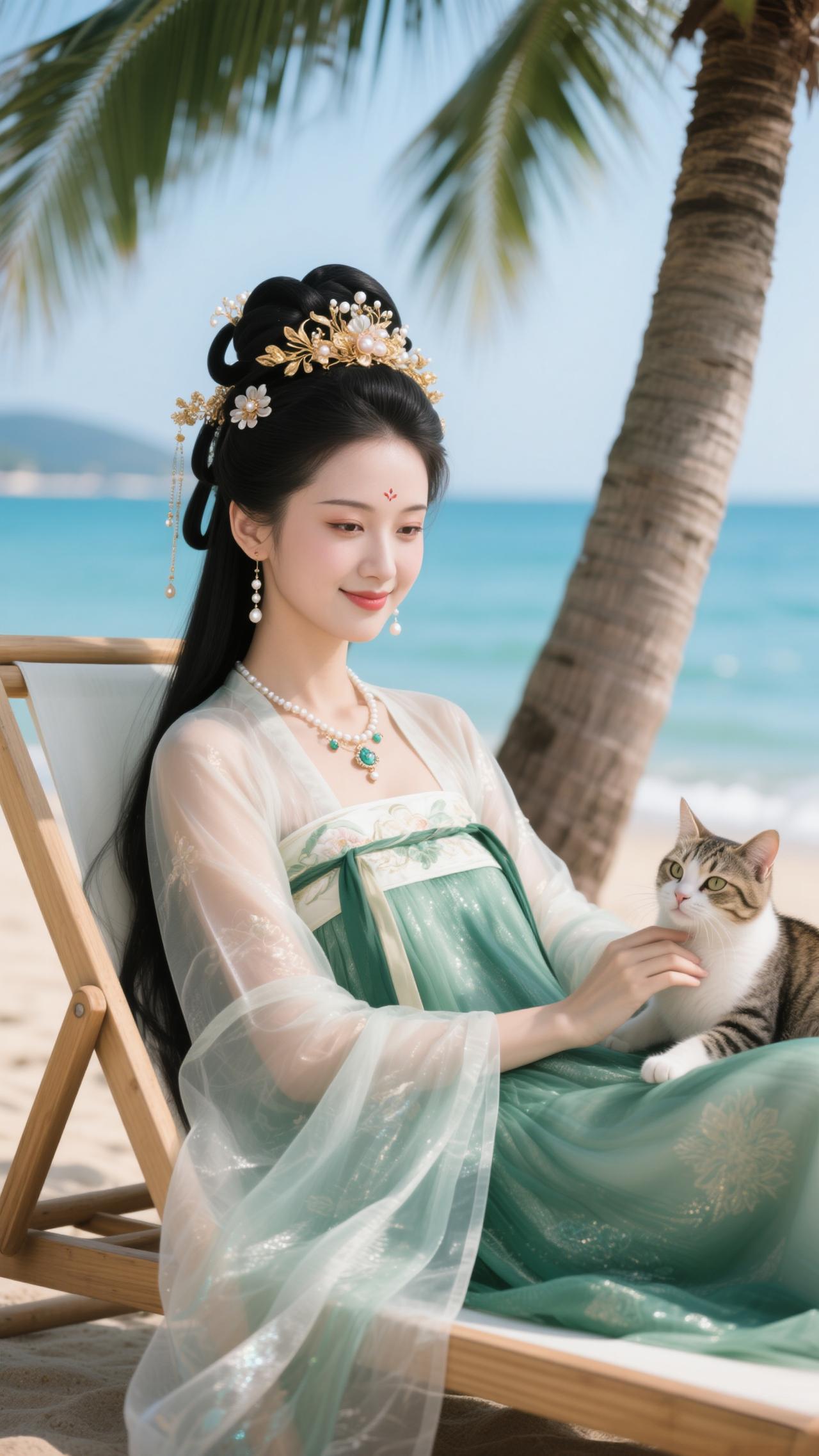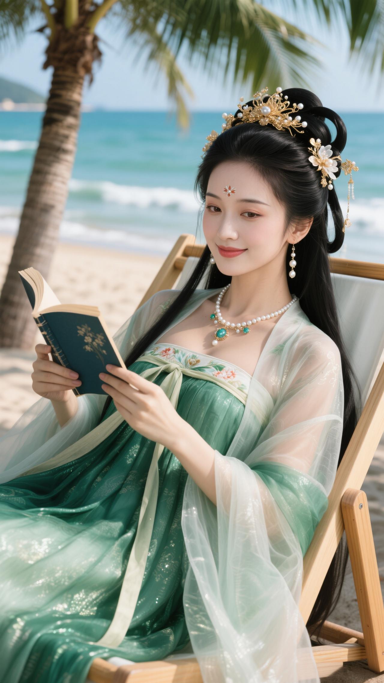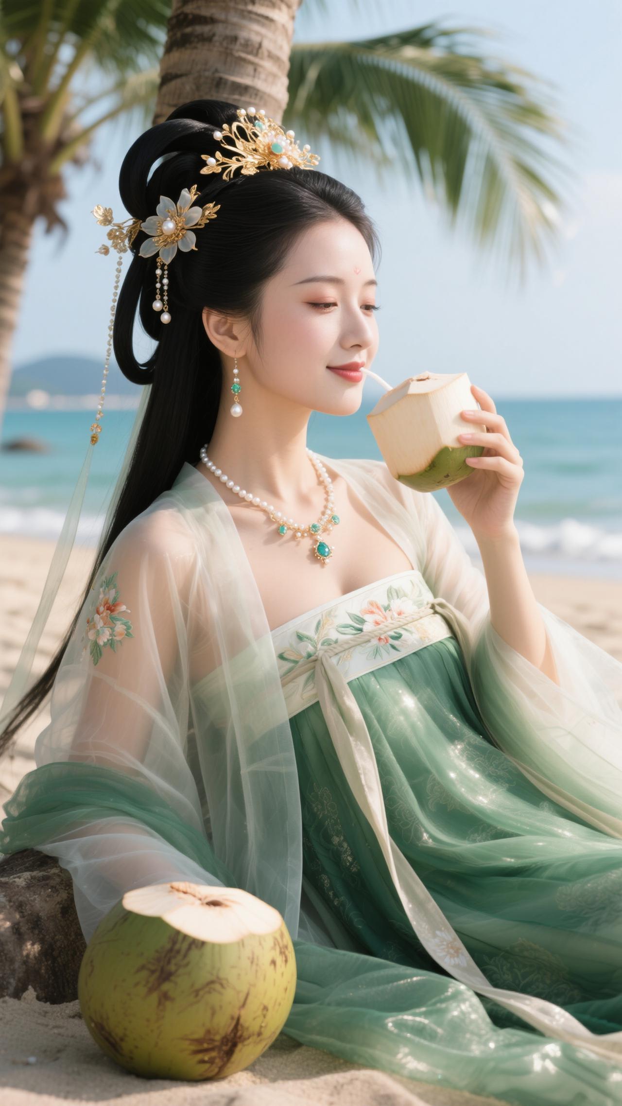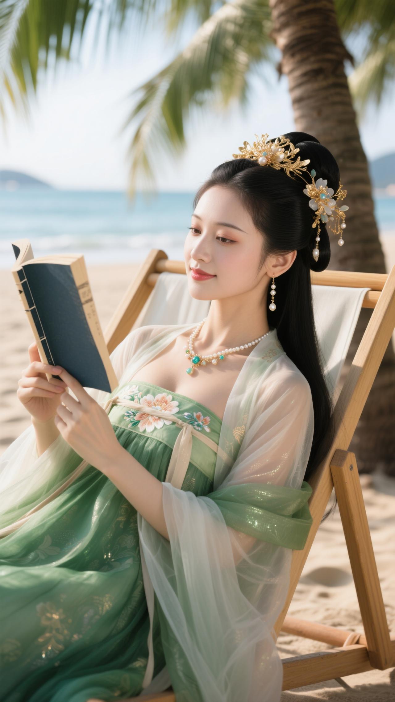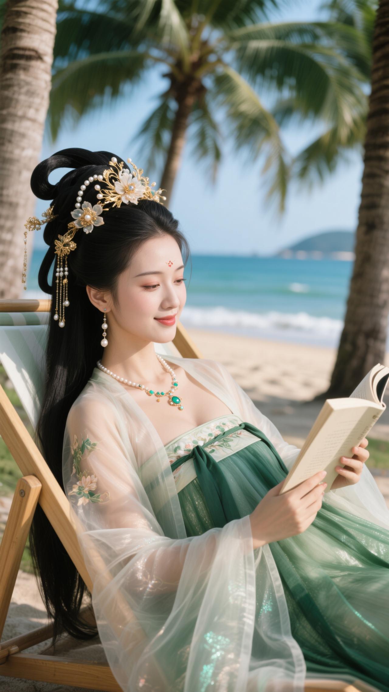 《浪淘沙·椰风海韵》 椰影曳金滩,浪吻云鬟。罗衣轻透碧琅玕。闲展素书风里卧,梦落沧澜。 珠翠映晴川,眉黛春山。潮声似共古音弹。一枕清宁鸥鹭伴,醉了流年。