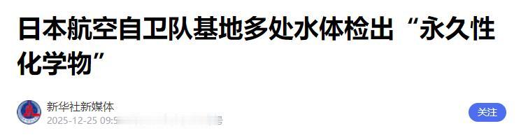 快报!快报 日本突然宣布了 12月25日,日本航空自卫队新田原基地被曝出大问题。基地里面和周围取了8处水样检测,结果7处都超标了。超的是全氟和多氟烷基物质,就是那种很难分解的“永久化学品”。 宫崎县政府的检测结果挺直白:基地里里外外 8 处水样,7 处都栽在了全氟和多氟烷基物质上,最严重的那处每升水含 1200 纳克,是日本暂定标准的 24 倍。 新田原基地的污染不是刚出现,反而在持续恶化。宫崎县政府这次的检测不是第一次,早在今年8月就做过一次水质调查,对比两次结果发现,有6处水样里的“永久化学品”浓度不仅没降,反而明显增加了。 这意味着污染源头一直没被切断,这些有害物质还在不断往地下和周边水体渗透。要知道,新田原基地位于宫崎县新富町,周边生活着近1200名居民,他们的饮用水、灌溉用水很多都来自地下和附近河流,现在这些水源被大面积污染,相当于把健康风险直接送到了居民家门口。 有当地居民接受采访时说,之前就觉得水质有点怪,现在看到检测结果,连浇菜都不敢用河里的水了,只能天天买瓶装水,生活成本凭空增加了不少。 那这些“永久化学品”到底是从哪来的?结合新田原基地的属性,答案其实很明确。作为日本航空自卫队的主力训练基地,这里日常会进行大量的航空训练,其中消防演练是重要科目。 而航空消防中常用的泡沫灭火剂,恰恰是“永久化学品”的主要来源之一。这种泡沫因为疏水疏油的特性,灭火效率极高,一直是军事基地和机场的标配,但它里面含有大量全氟和多氟烷基物质,演练过程中难免会发生泄漏,这些物质会顺着地面渗入土壤,再慢慢渗透到地下水层,最终污染周边的水体。 这种污染的扩散速度远超想象,从基地内部的蓄水池到周边的河流、地下水,形成了一个完整的污染链条,这也是为什么8处检测点7处都超标的核心原因。 新田原基地的污染事件并不是孤例,而是日本军事基地污染问题的一个缩影。从2023年开始,日本冲绳县、大阪府、东京都等地就接连曝出“永久化学品”超标事件,而且这些污染区域有一个共同特点——都邻近驻日美军基地或日本自卫队基地。 比如冲绳的嘉手纳基地、东京的横田基地,之前都检测出过高浓度的全氟和多氟烷基物质,其中有个点位的超标倍数甚至达到32倍。 今年7月爱知县丰山町的一次居民血检显示,四成受检居民血液里的“永久化学品”含量超标,而当地的供水站正好邻近航空自卫队小牧基地,污染源头直指军事活动。 这说明日本军事基地的环保监管存在严重漏洞,类似的污染可能还在更多未检测的区域悄悄发生。 面对越来越严重的污染,目前的应对措施却显得格外苍白。宫崎县政府虽然公布了检测结果,也要求新田原基地配合调查污染原因,承诺每季度都会复查水质,但并没有强制关停污染源的法定权限。 而新田原基地的回应更像是在敷衍,只表示会启动污水池的防渗改造,试点替换环保型消防泡沫,却没给出具体的整改时间表,也没说明会投入多少资金用于污染治理。这种“只表态不行动”的态度,让周边居民根本无法放心。 而且日本目前对“永久化学品”的管控本身就存在短板,只有暂定的标准,没有明确的强制减排法规和统一的排放标准,再加上军事基地的保密属性,第三方监督根本无法介入,形成了“污染—投诉—推诿”的恶性循环。 其实不止日本,“永久化学品”污染已经成为全球范围内的环境难题,但日本军事基地密集爆发此类事件,还是暴露了其在国防建设与环境保护平衡上的严重缺失。 军事活动保障国家安全固然重要,但不能以牺牲民众健康和生态环境为代价。对于日本来说,当务之急是完善相关法律法规,明确军事基地的污染责任主体,制定强制性的治理标准和时间表,而不是任由污染持续扩散。 同时,也需要推动军事领域替代材料的研发和使用,从源头减少“永久化学品”的使用,比如用环保型消防泡沫替代传统泡沫,从根本上切断污染来源。 对于周边居民来说,当下最迫切的是保障饮水安全,安装经过认证的反渗透净水器或许是目前最有效的防护手段。 但这终究只是权宜之计,要想彻底摆脱污染威胁,还是需要相关部门拿出切实有效的治理方案。 新田原基地的污染事件再次敲响警钟:军事活动从来都不是环保的“法外之地”,任何忽视环境安全的行为,最终都会反噬到普通人的生活中。 希望这次的事件能推动日本正视军事基地的污染问题,尽快拿出负责任的解决方案,否则“永久化学品”带来的危害,可能会影响一代又一代人的健康。