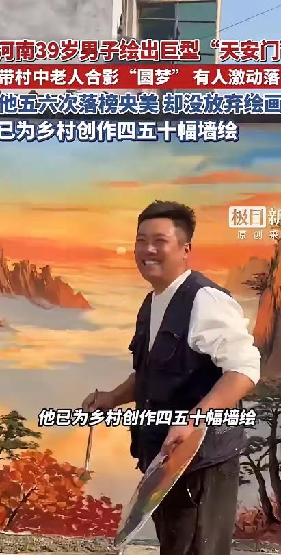 当大众感叹于只有初中毕业文凭的青年农民画家手绘的墙壁画大气磅礴、催人泪下的时候,
