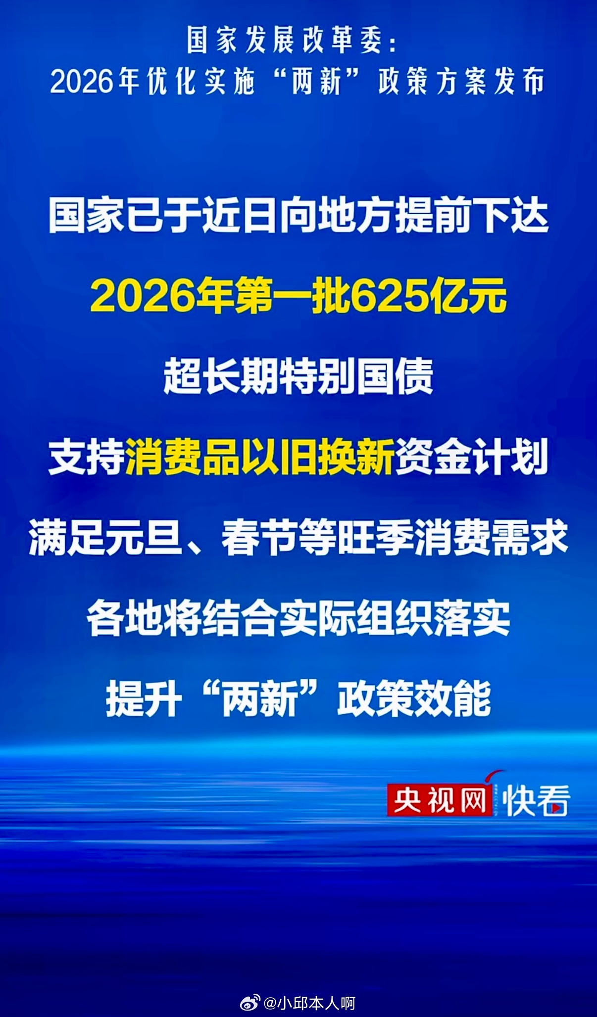 今天(12月30日),国家发改委和财政部明确了2026年汽车“以旧换新”补贴政策