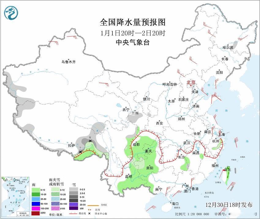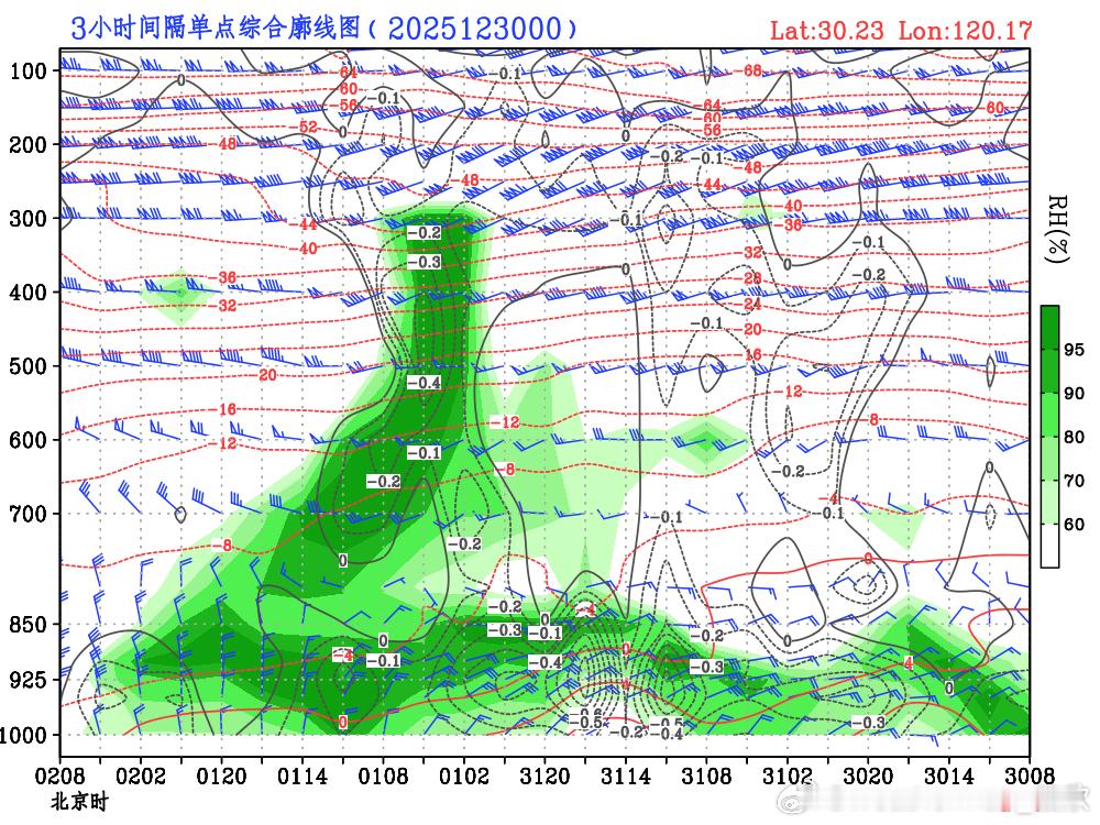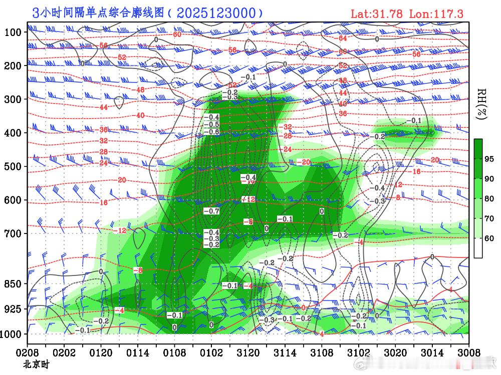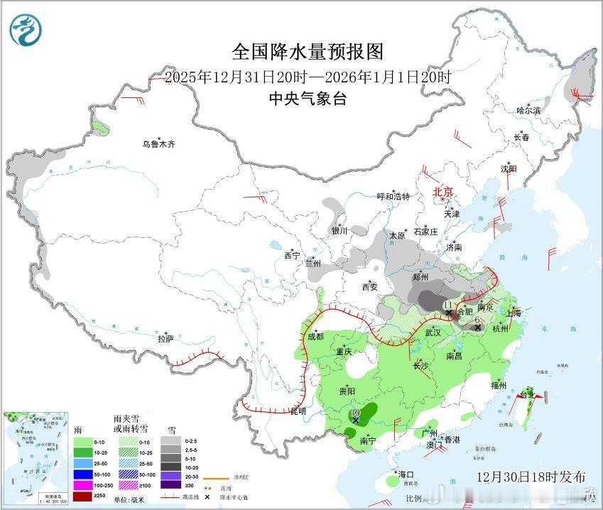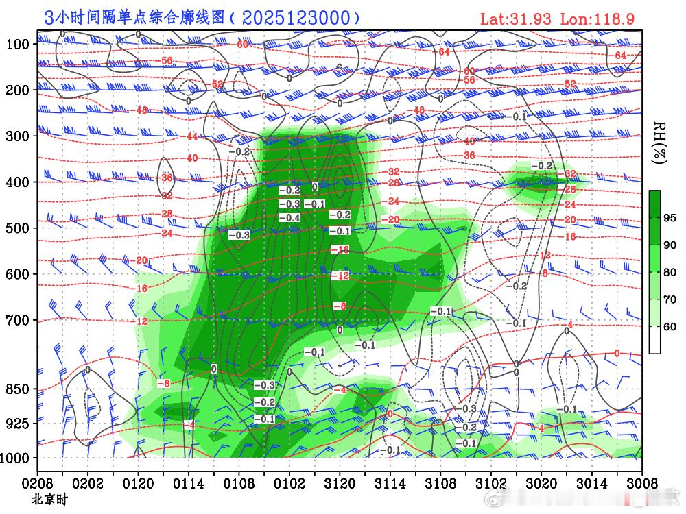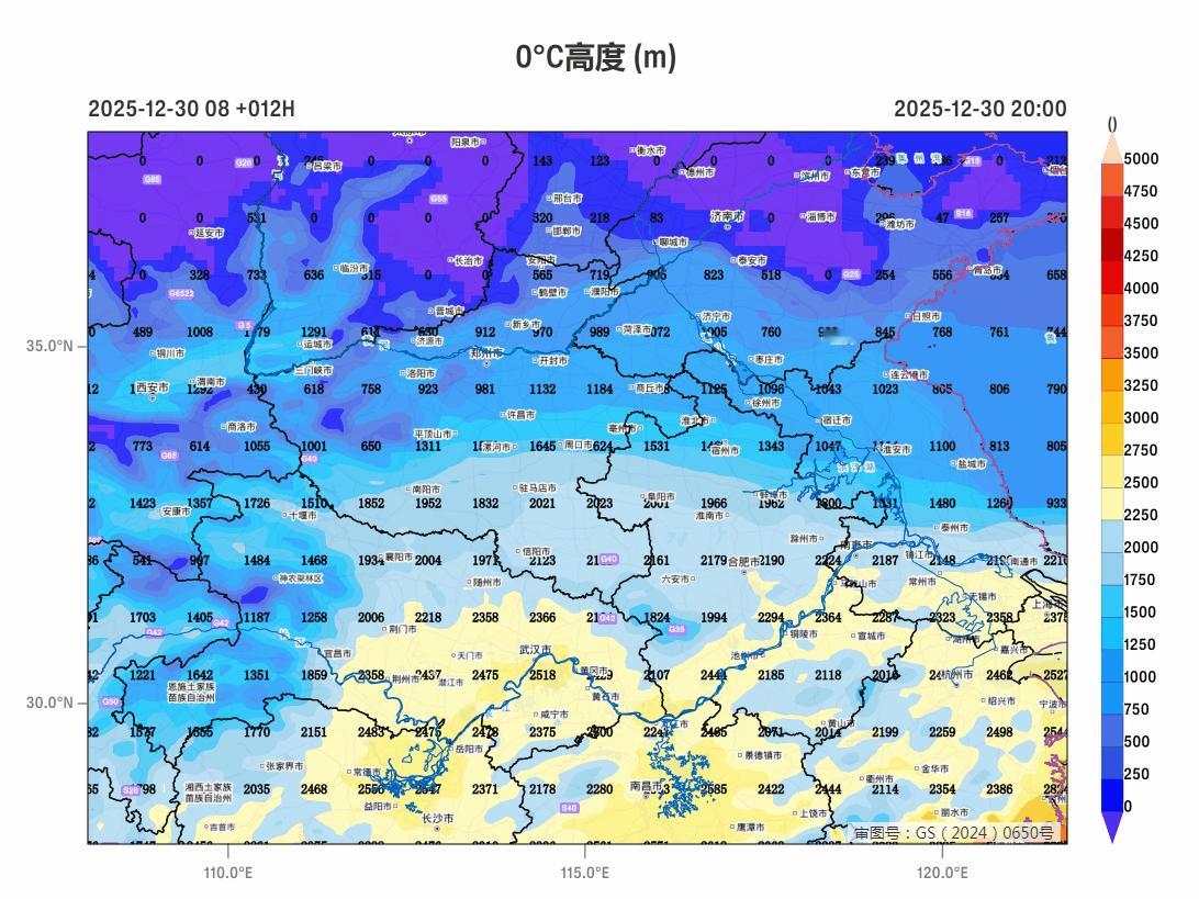 【跨年雨雪过程】昨晚到今天西南地区的降雨发展增多,重庆和四川站点包揽降水榜前10,也对应西南暖湿气流不断北上。未来还有冷空气南下,今晚到1月1日,我国黄河以南地区将有一轮大范围雨雪。今晚到明天,在贵州、重庆、湖南多地有中到大雨。陕西和周边一带,有中到大雪,局地暴雪。明晚到后天,降雪区向东南转移。河南南部、安徽西部可能有大雪,局地暴雪。1日的雨雪分界线,实际有可能比目前预报更偏东南。图4为0℃层高度预报,图中紫色和深蓝色区,对应0℃较低,利于降雪。这次西安31日初雪没悬念。郑州在31日大概率也有雪,合肥和南京大概率可能先雨后雪,重点看31日晚-1日凌晨。杭州在1日上午也存在降雪的可能性。图5-8为郑州、合肥、南京、杭州的综合廓线图预报。1月2日以后,冷空气占据主动,暖湿气流败退到西南。因此1月2日以后,我国总体降水变少,但西南地区的阴雨雪还会比较频繁。