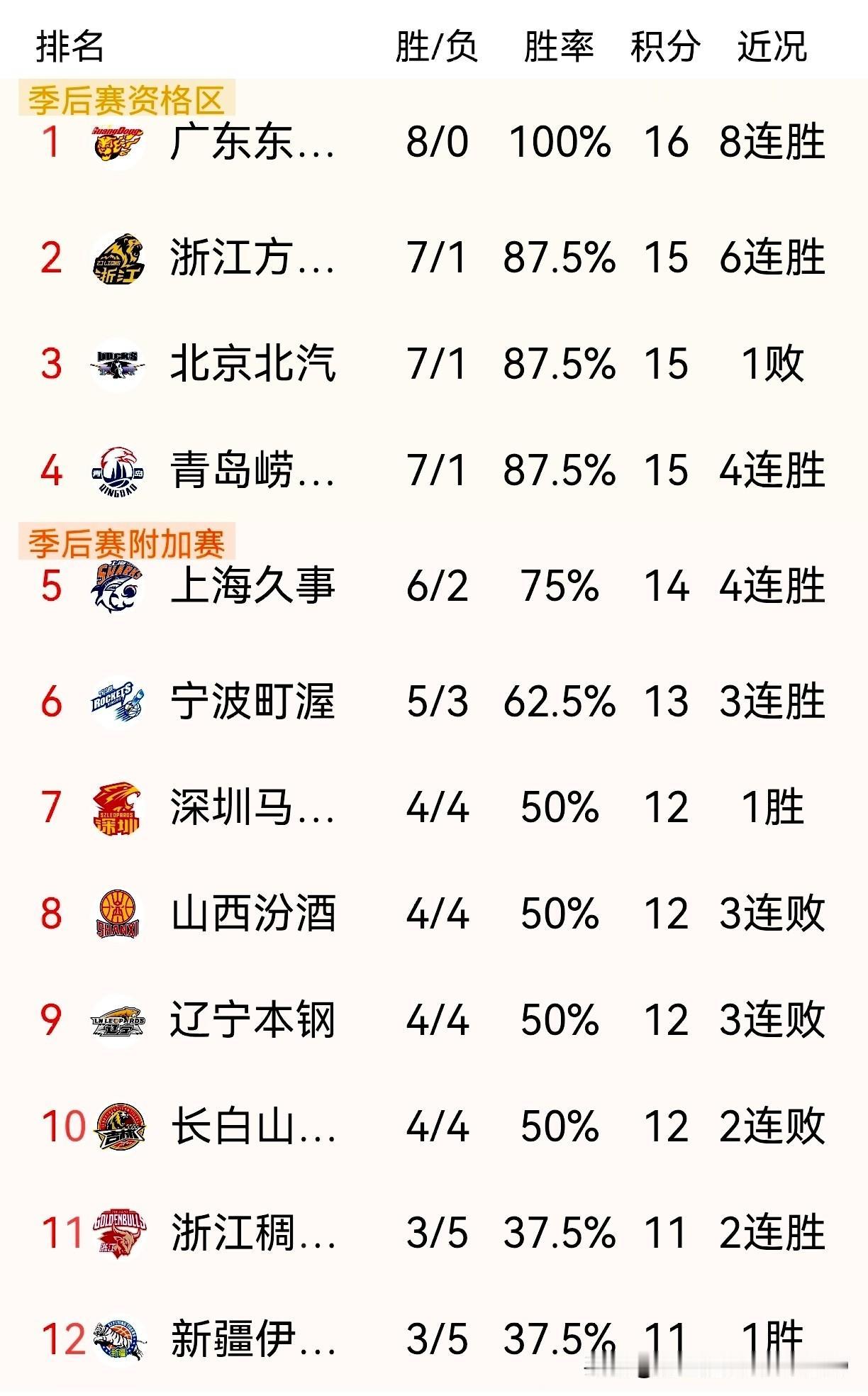 [玫瑰][玫瑰]CBA常规赛第八轮,浙江三支球队全部取得了胜利。 1,浙江稠州金租以87-73战胜南京天之蓝,浙江稠州金租3胜5负,累积11分,暂排积分榜第11。南京天之蓝3胜5负,积分11,暂排积分榜1第13位。 2,浙江广厦客场以91-85战胜北京北汽,取得六连胜,战绩为7胜1负,积15分,暂排积分榜第二。北京北汽遭遇首败,战绩7胜1负,积15分,暂排积分榜第三。 3,宁波町渥106-73大胜四川丰谷酒业,宁波町渥5胜3负,积13分。暂排积分榜第六。四川丰谷酒业遭遇八连败,排名垫底。