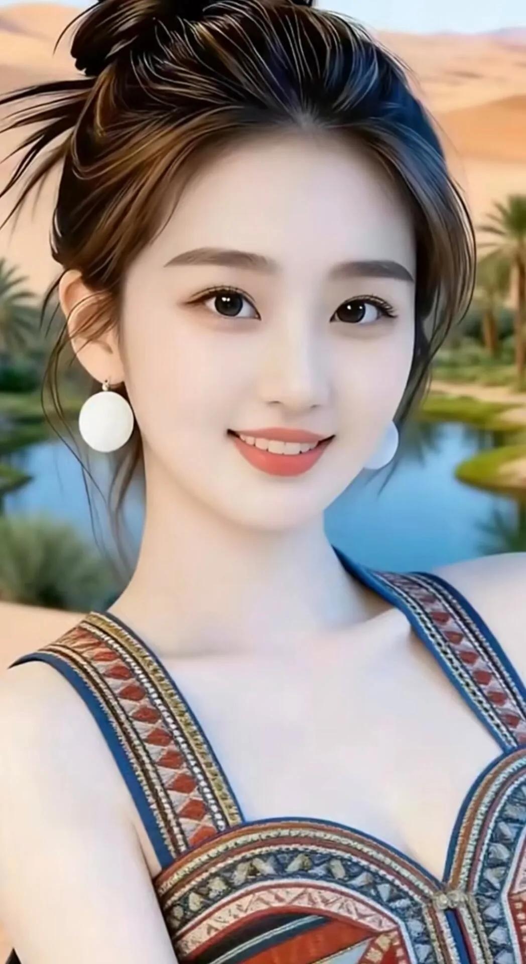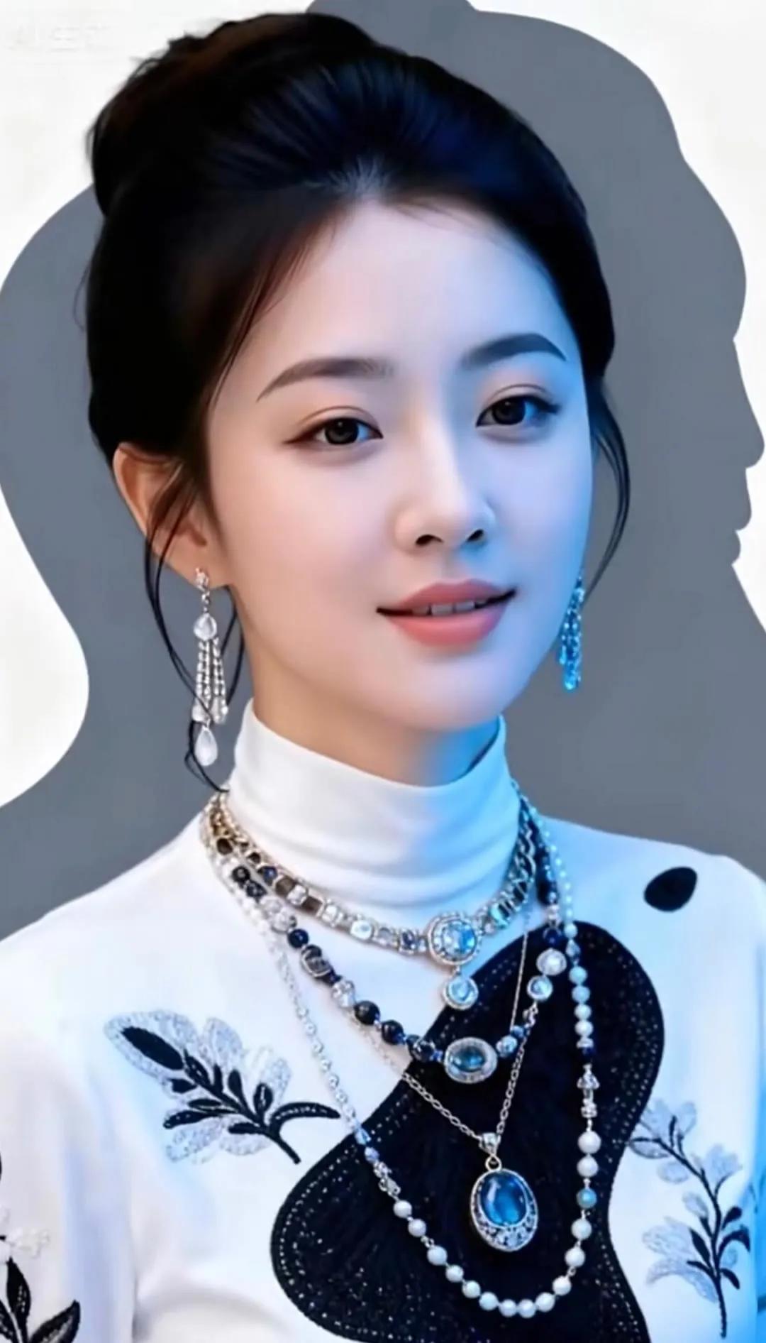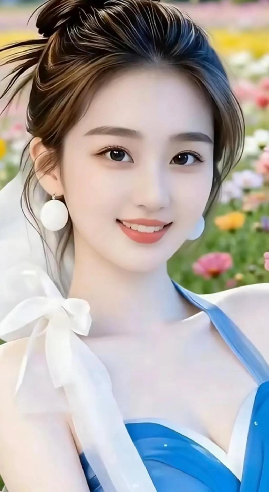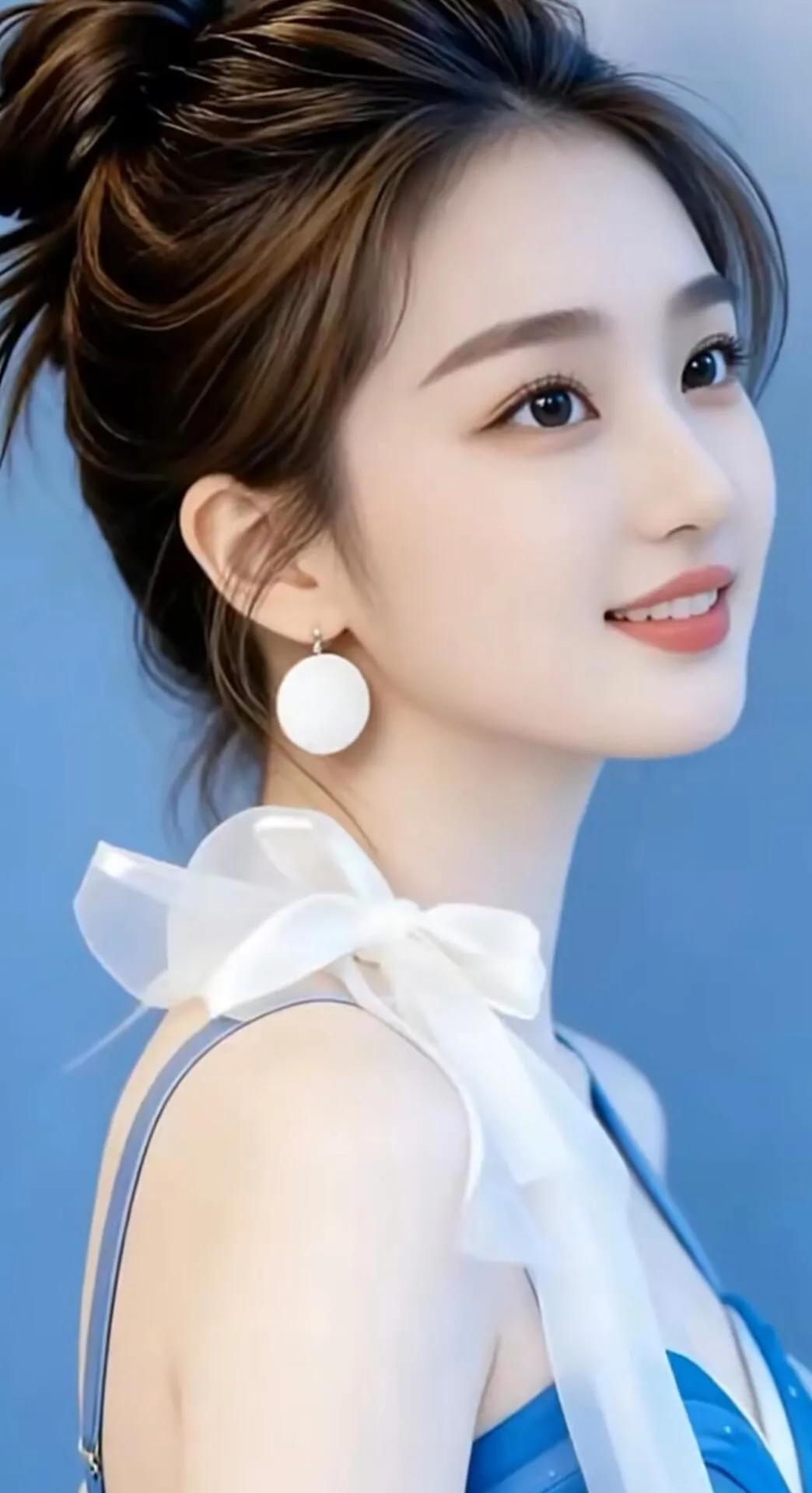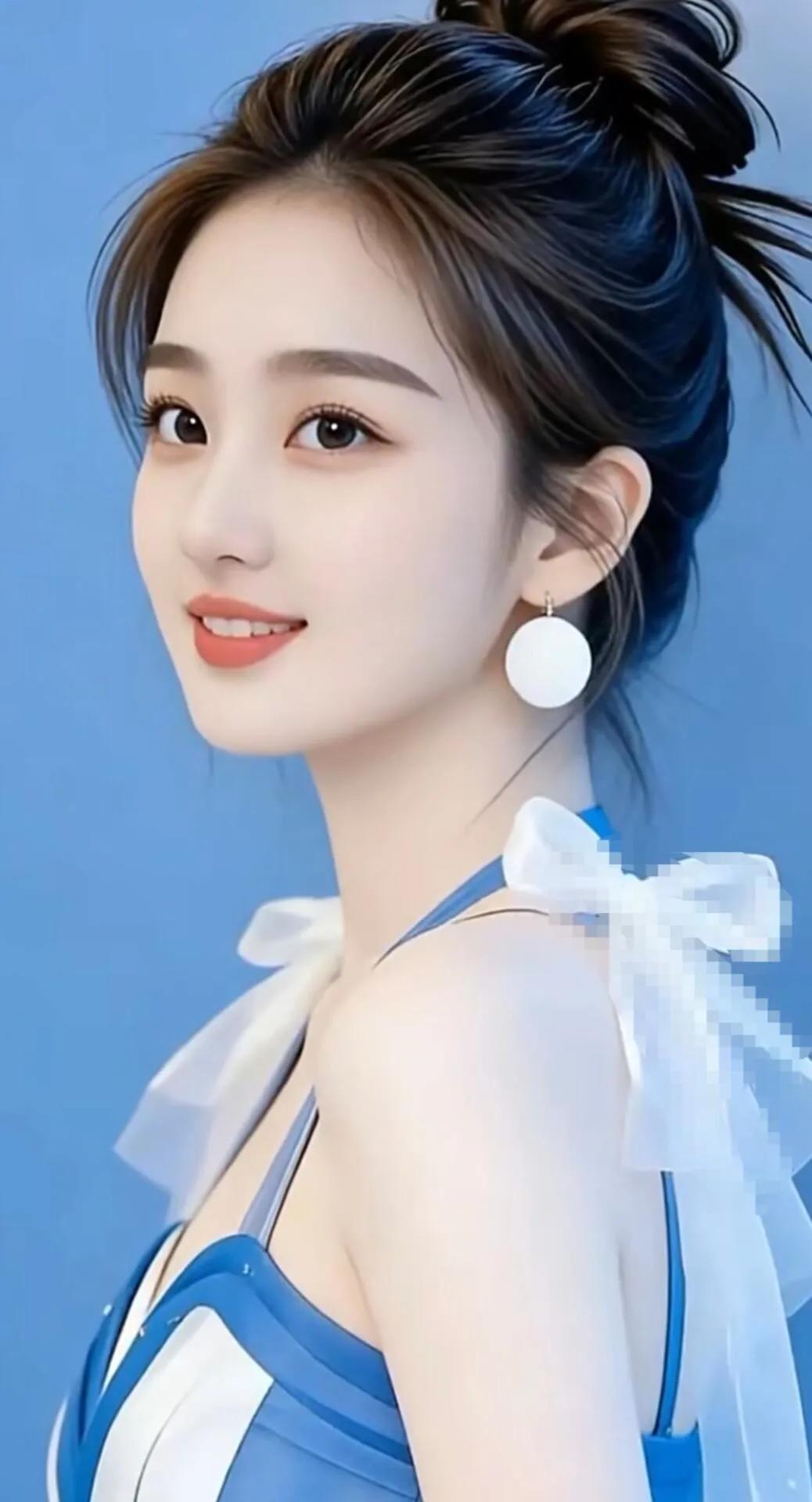优雅蓝裙,甜美笑容,时尚耳环,完美搭配!