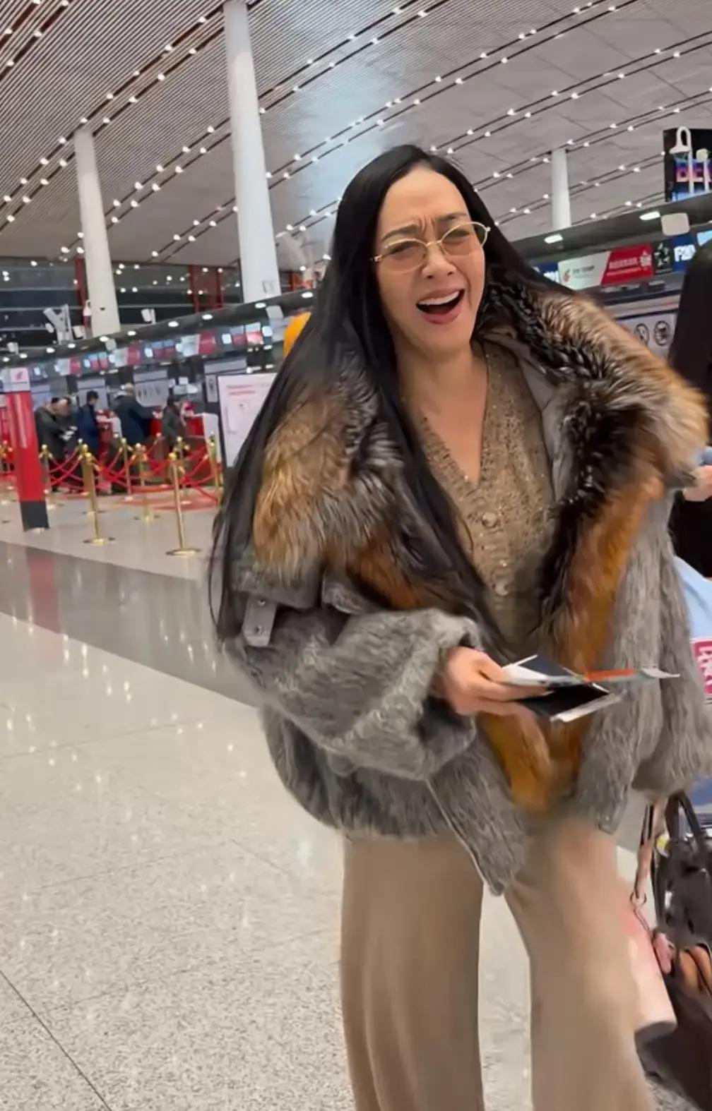51岁钟丽缇机场翻车? 她穿大毛领,脖子没了,腰也消失。 网友吐槽像熊,我细看却想哭。 51岁还能这么敢,比20岁小姑娘更猛。 中年女人最怕什么?不是胖,是怕不敢。 她敢把身材亮出来,我们就敢多看一眼。 皮草确实显壮,可她把壮穿成了气势。 健身痕迹还在,只是被脂肪温柔包住。 这不是失败,是另一种活法。 别急着笑,等你到了50岁,未必敢这么穿。