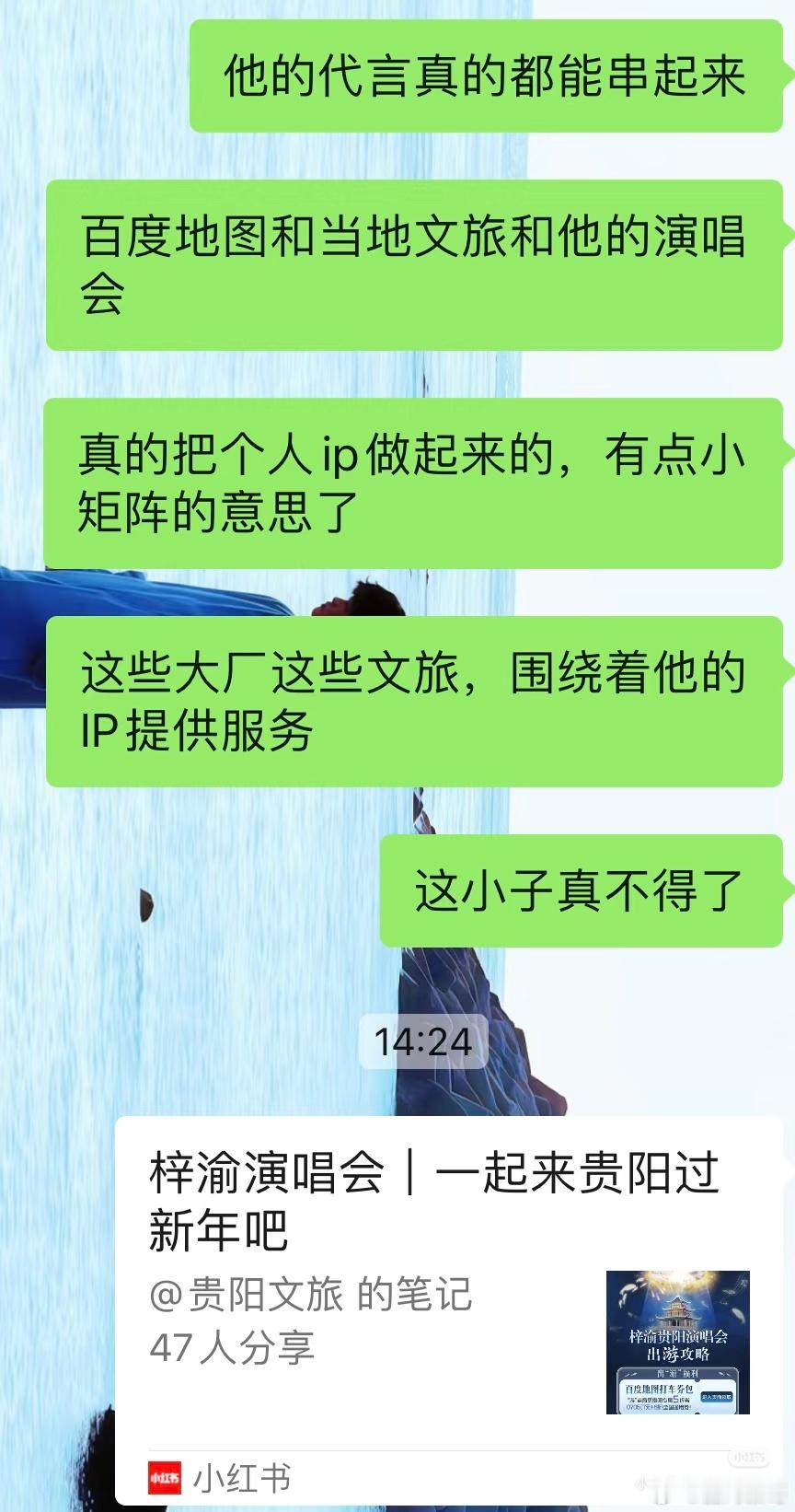 梓渝这小子才23但脑瓜子咋这么好用,各种个人ip活动都要做起来甚至还能串成小矩阵,尤其是和各地文旅的深度互动简直就是聪明到没边儿了!