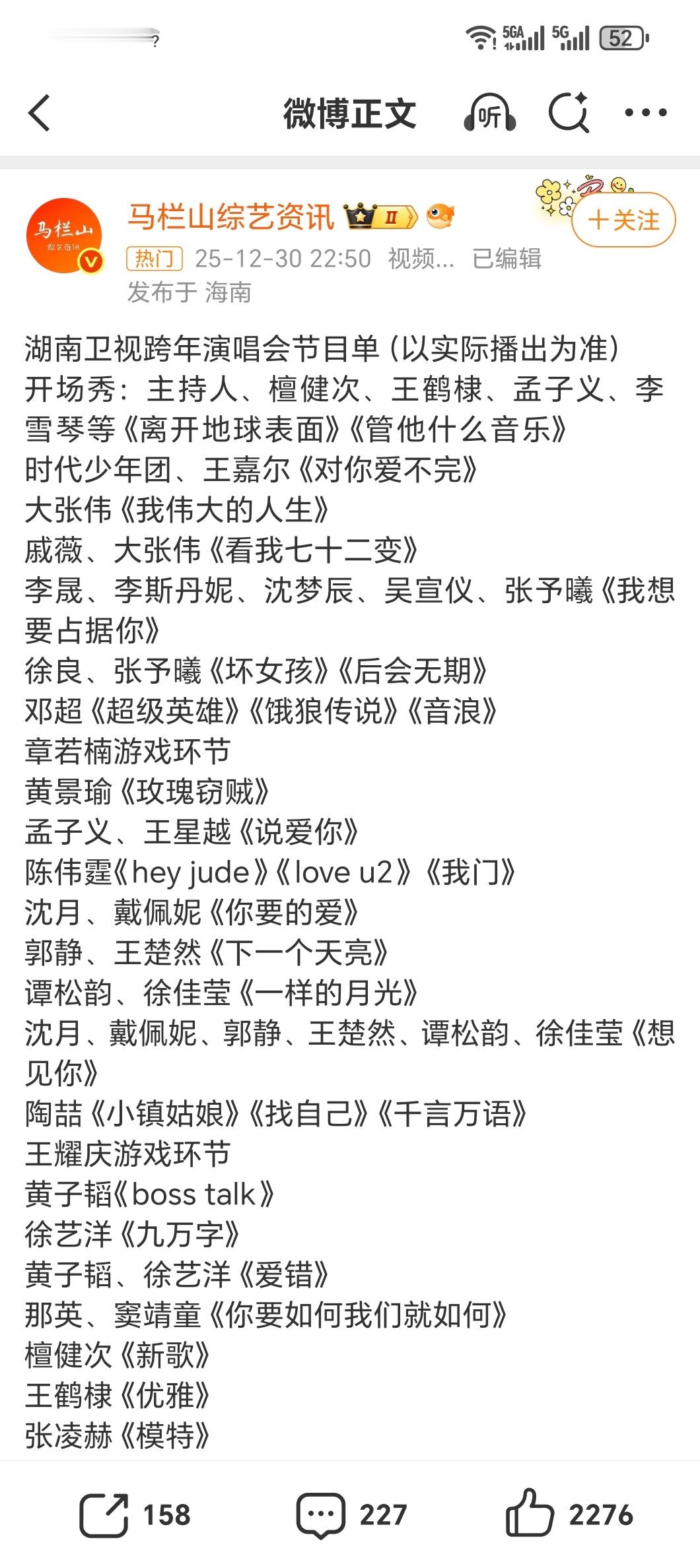 湖南卫视跨年演唱会嚯!是谁抢到了今晚跨年演唱会门票今年的节目和明星阵容相当可以我会在内场VIP第七排给大家实时转播你最期待谁?都给我来看!