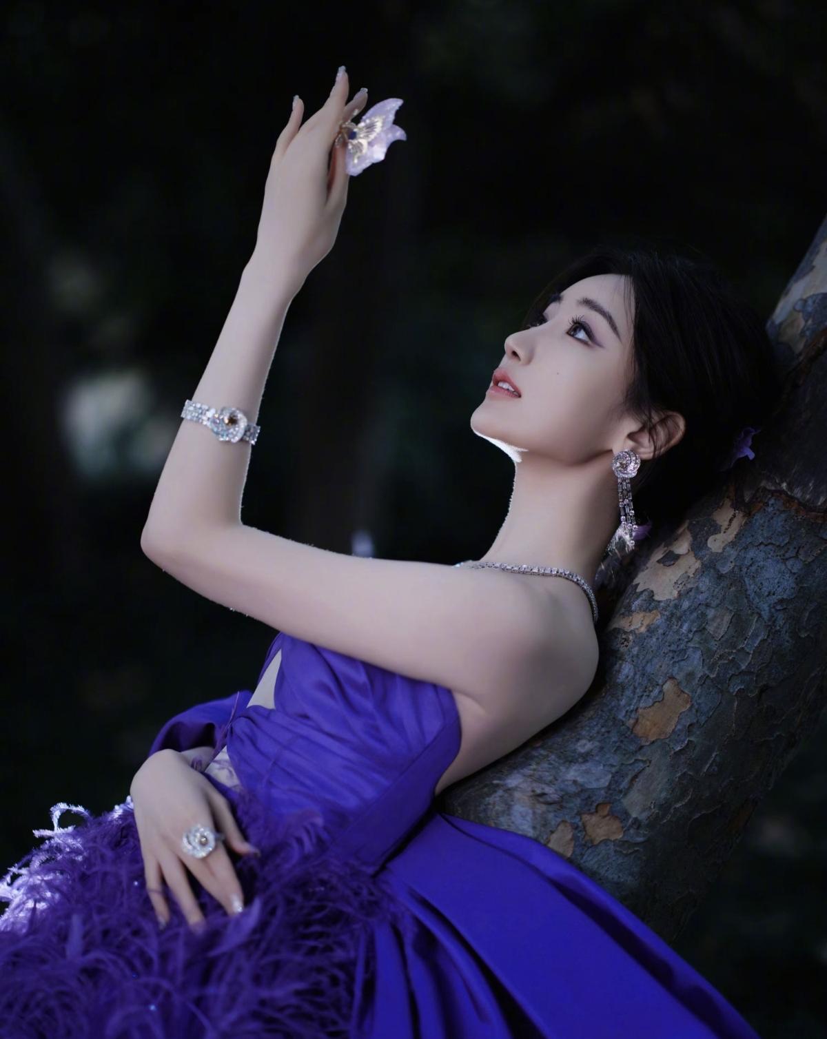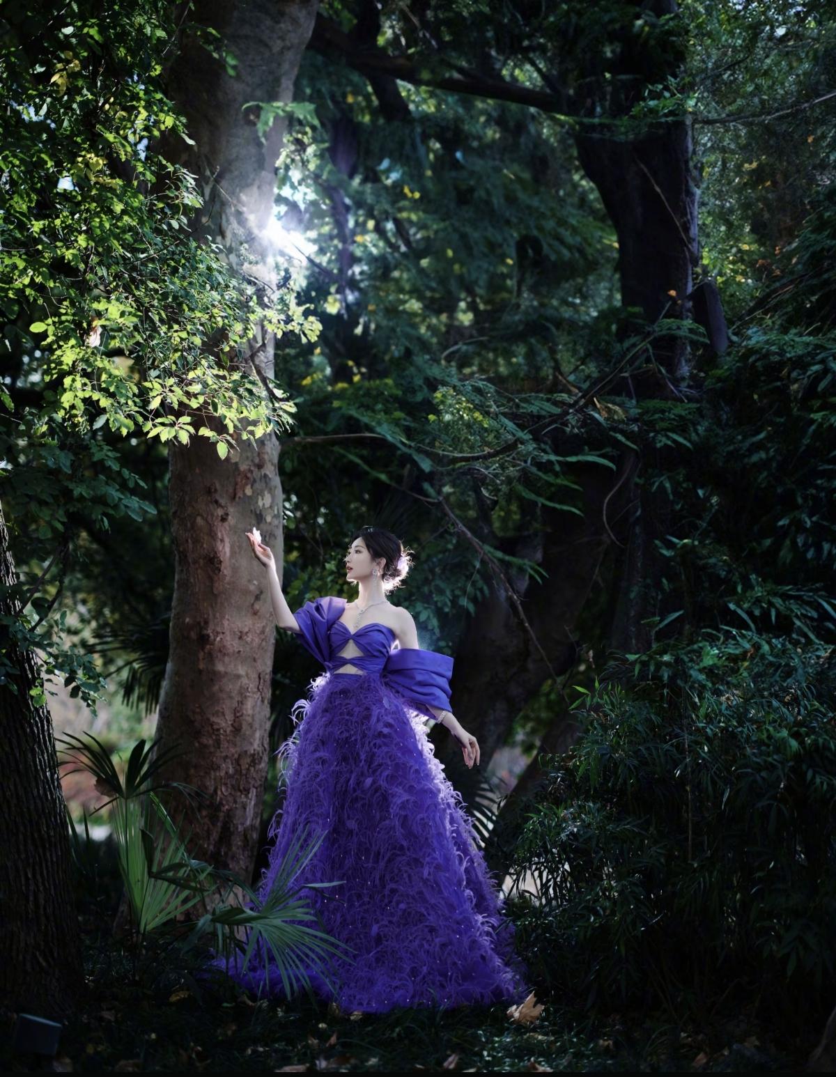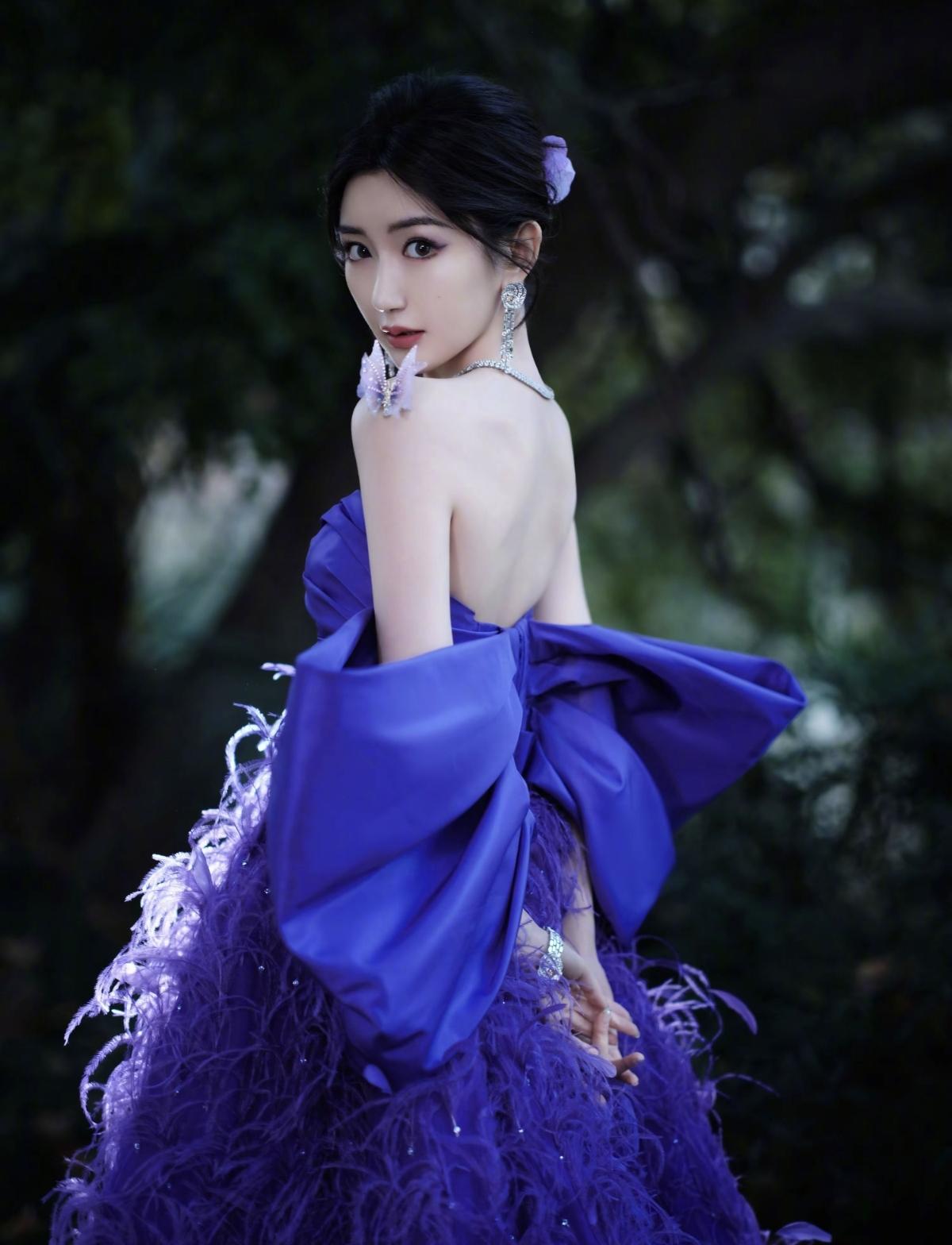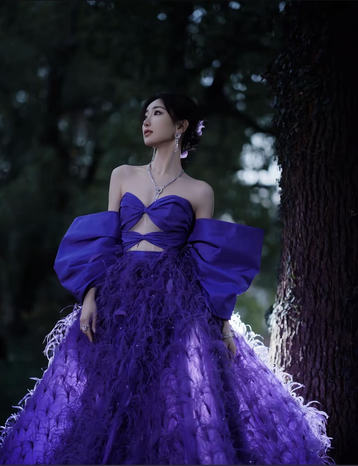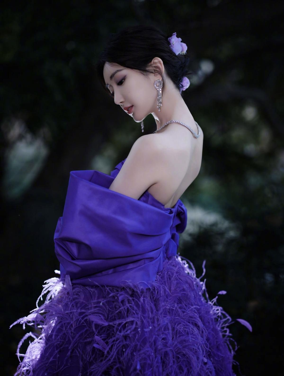 紫调晕染浪漫氛围,羽毛裙摆自带仙气流光,露背杀撞上一字肩的优雅,毛晓彤这造型,是惊艳时光的存在[给力][赞]娱乐明星