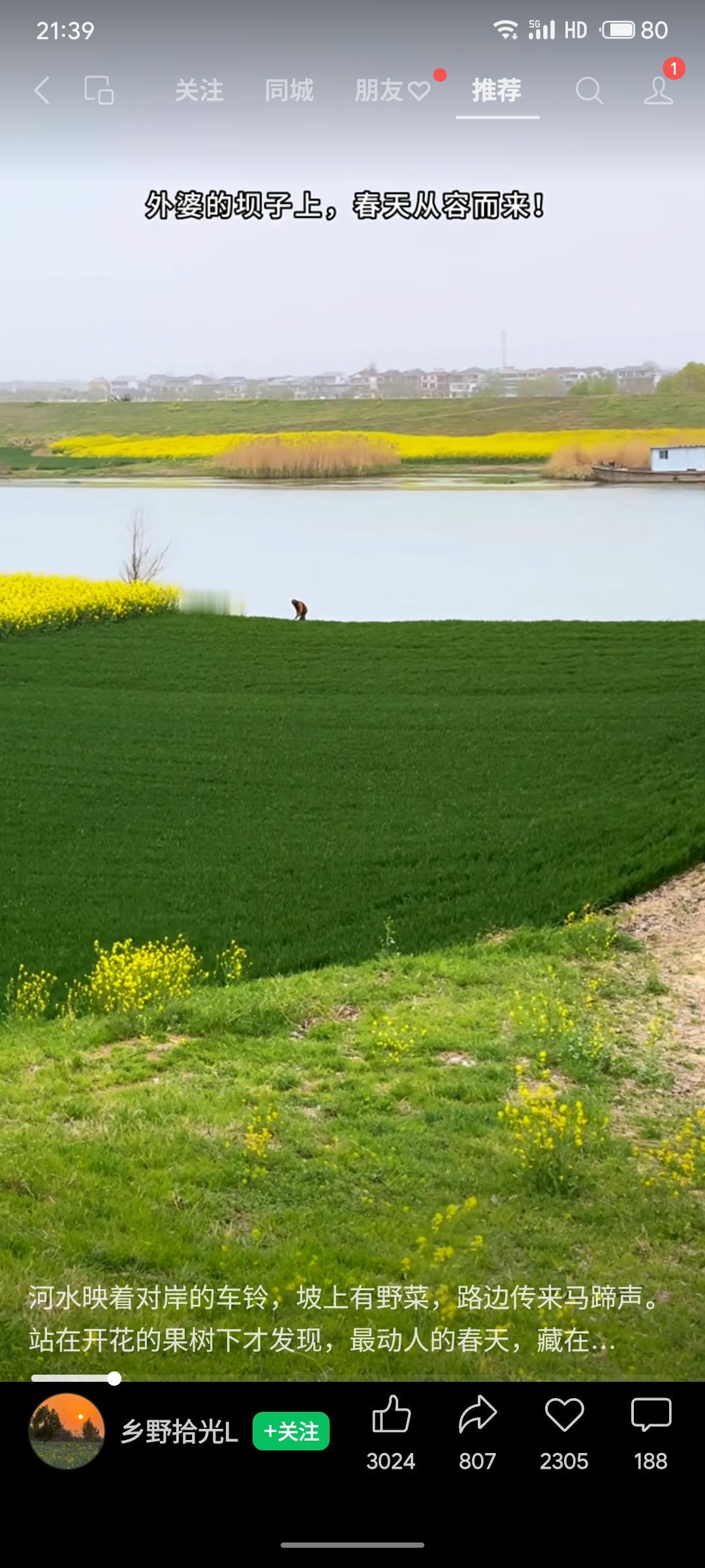 外婆坝上的春日,河水映着车铃,坡上野菜青,牛鸣声远。立于绿坡,方觉动人春色,皆藏于这乡野寻常光景之中。