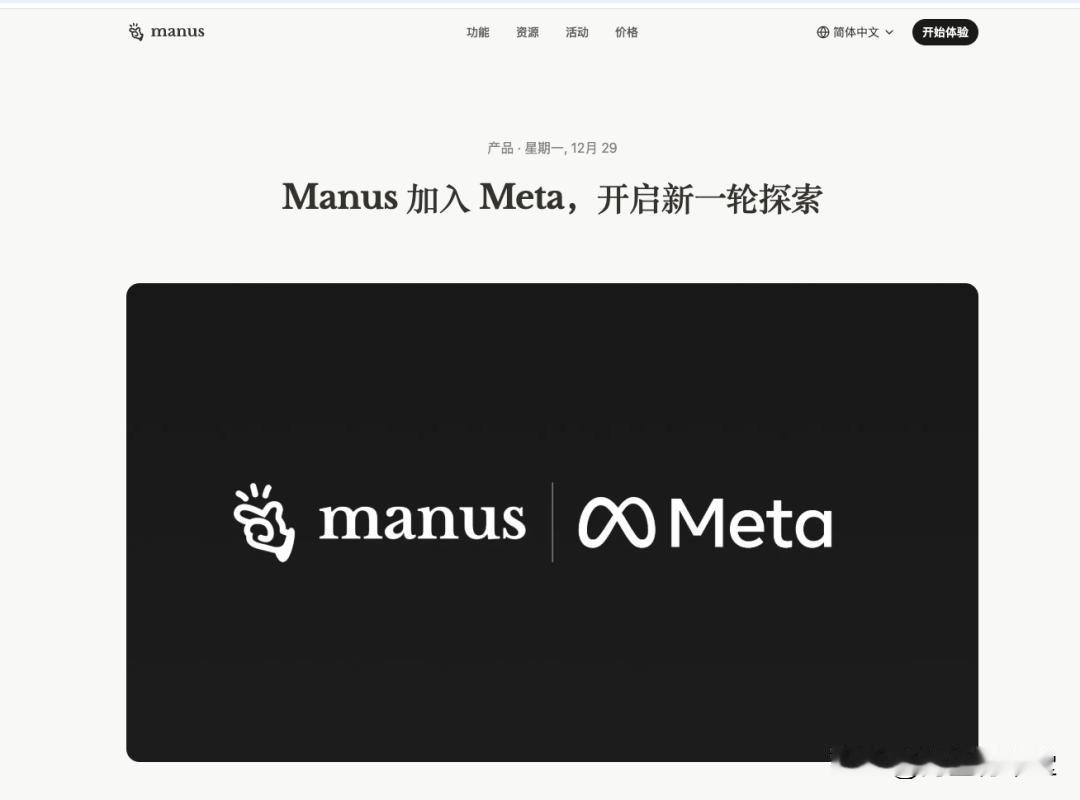 美:完成收购中国初创公司 12月30日,Manus在官网发布消息称,“Manus即将加入Meta”。Meta创始人扎克伯格是Manus的长期用户,这也是Meta自成立以来第三大的并购,合并完成后,将与Meta旗下核心全球消费级产品进行深度整合。 美媒认为,这是中美资本和科技融合度不减的标志。 同学们,很多人不解,不可一世的美国贸易战让世界各国白旗一片,怎么就唯独中国红旗飘飘呢?甚至于解放军围台军演,直接查扣了台湾商船了,特朗普总统仍然“没事人一样”,美国就这么容易服软吗?显然,美国人就服实力。尤其是中国经济实力让美国不得不服。 划重点:中美经济和科技深度融合才能化解政治与军事矛盾。和则双赢。 (观点不同不出恶声)
