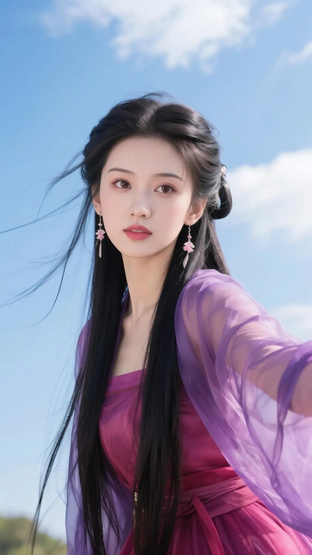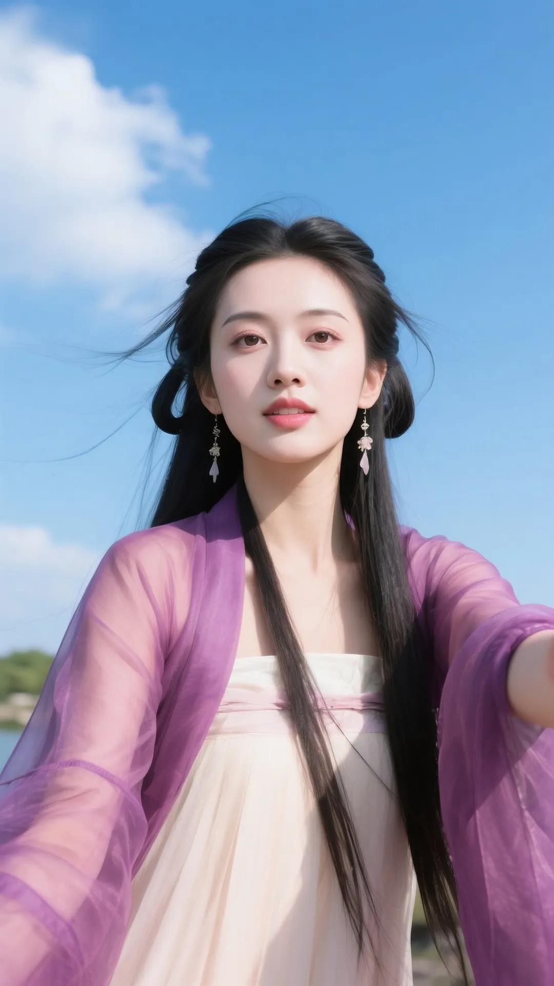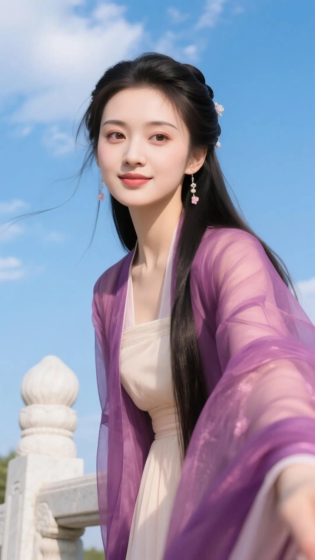 古风少女,云海之巅,轻纱飘逸,笑靥如花。