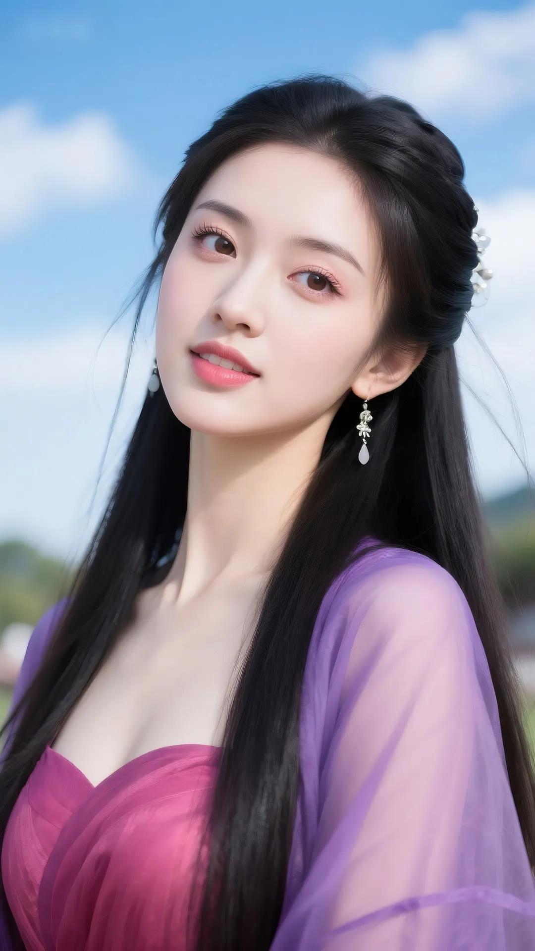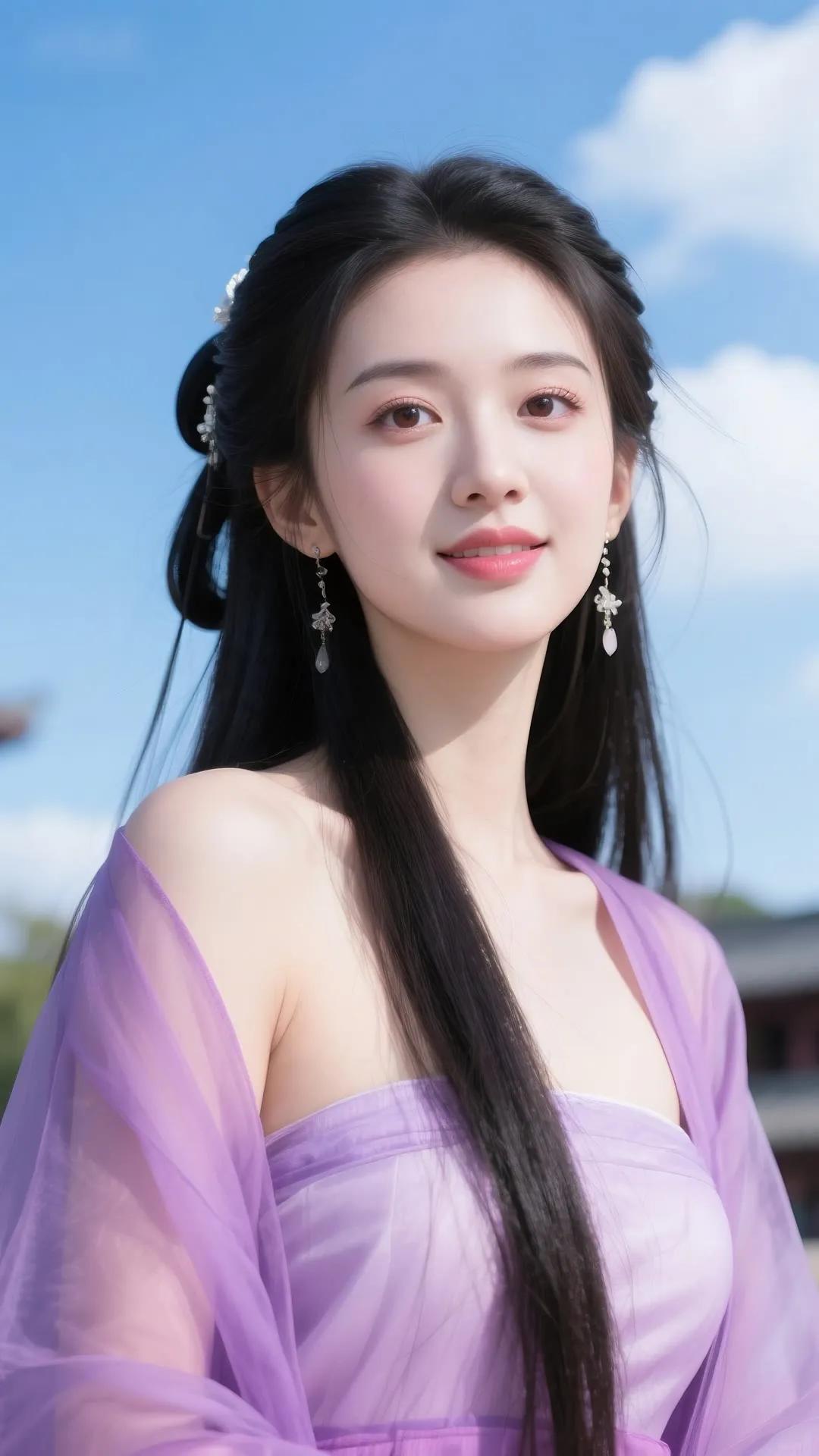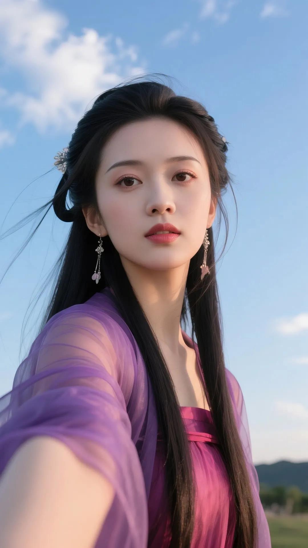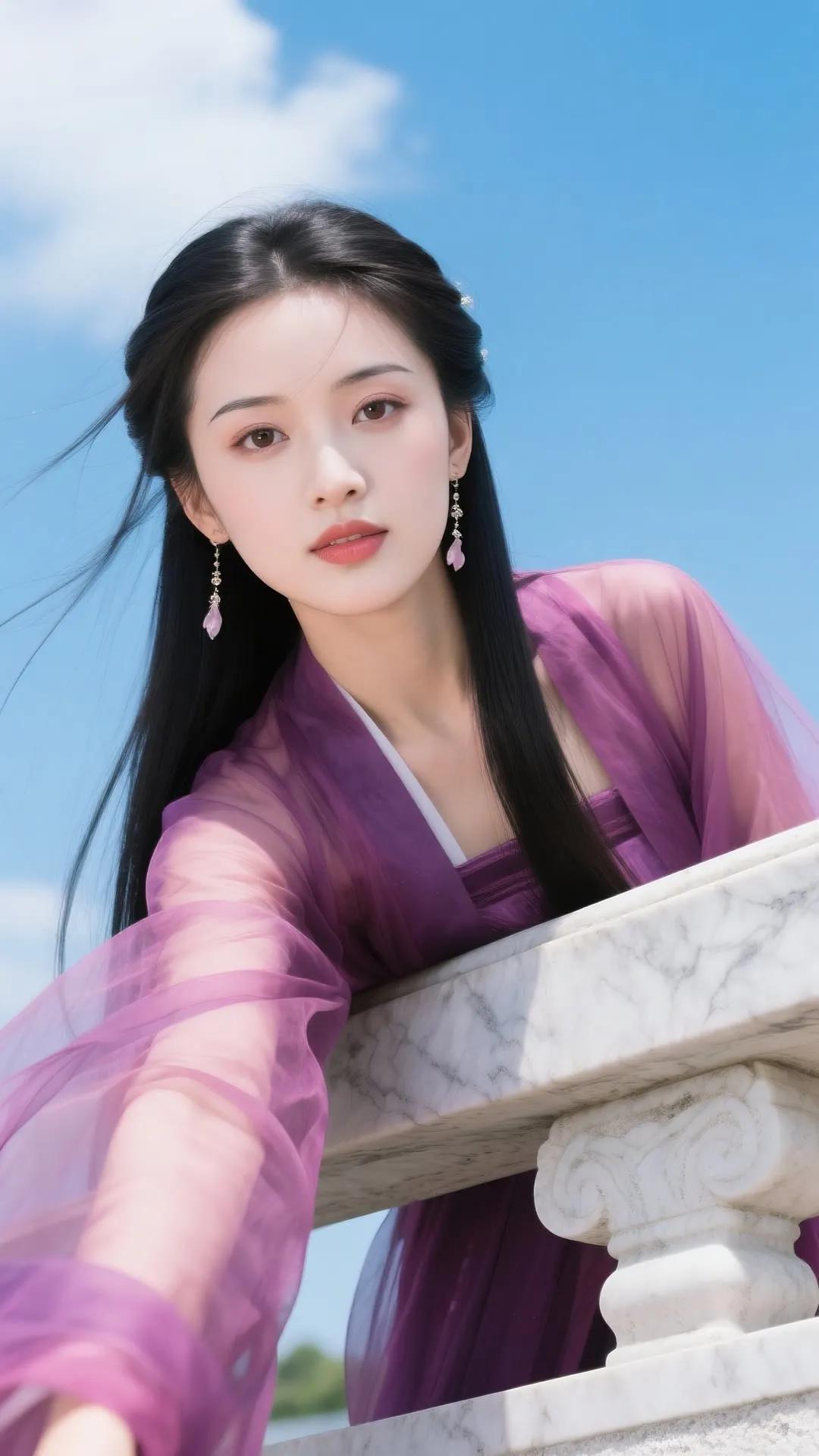 古风少女,云海之巅,轻纱飘逸,笑靥如花。
