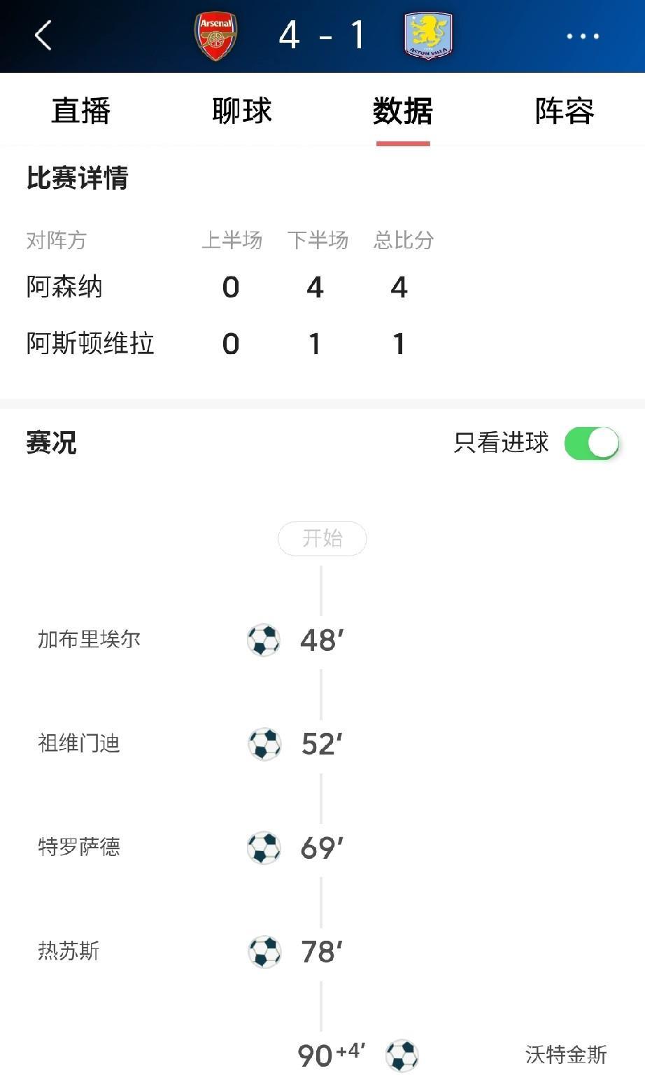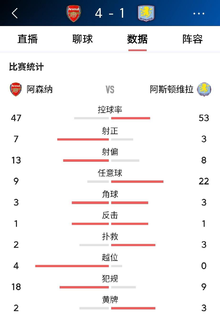 震惊,阿森纳主场4-1大胜赛前11连胜的维拉!一战揭秘几个事实!