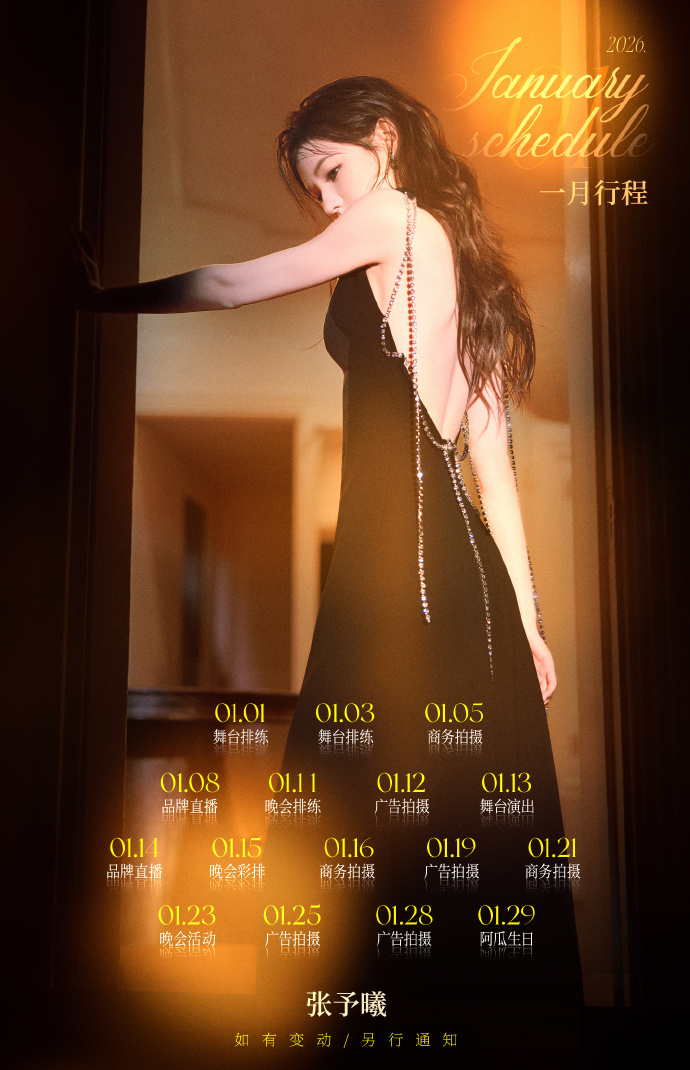 明星2026年行程图 明星们的2026年第一个月的行程图来啦~开门见事业长虹!明年的娱乐圈再热闹一点吧