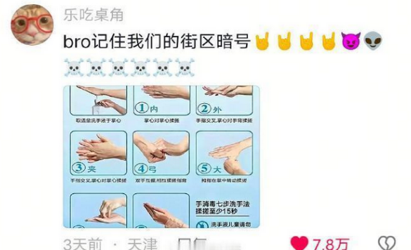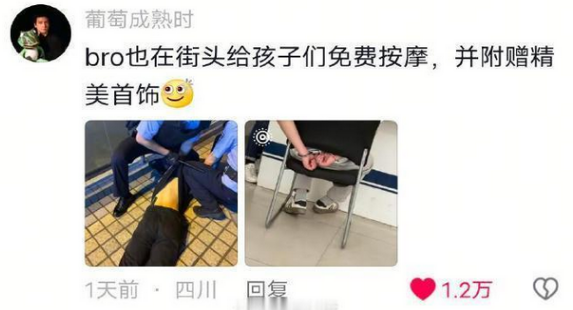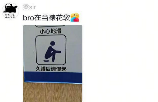 这哥们儿正在用一种特别的方式表达对某些事情的喜爱,估计是为了逗你开心