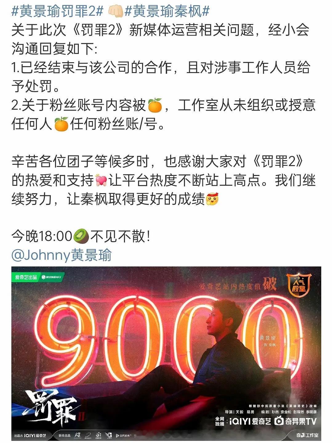 粉丝投稿罚罪2的宣发🍉,工作人员因为剪了黄景瑜、王子奇cp向视频而丢工作。