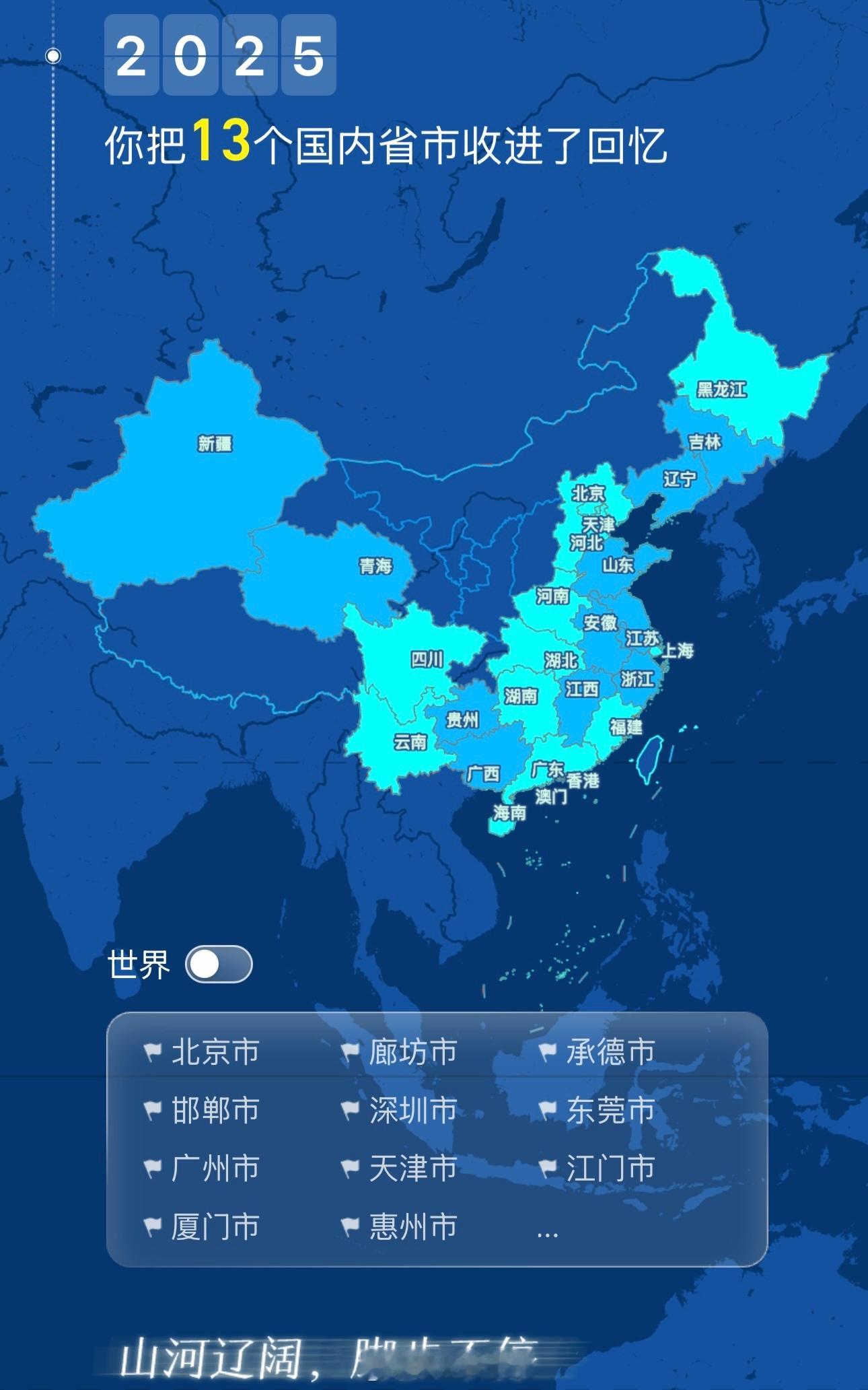 重庆陕西中国台湾漏掉了,不过也还有甘肃西藏内蒙宁夏山西没去过,2026希望能解锁!