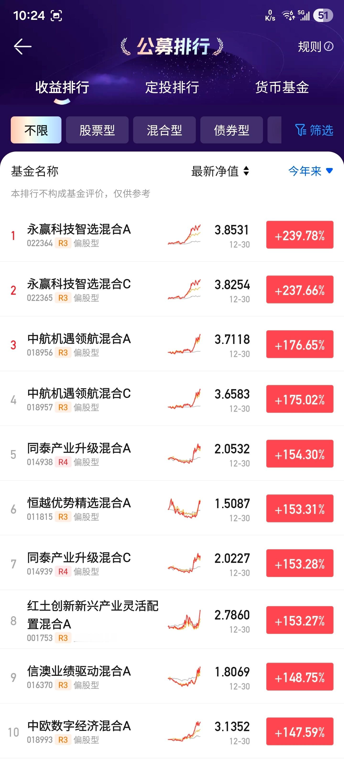 2025年最后一个交易日了,场外公募基金排名。共计有70只(AC去重后有40只左