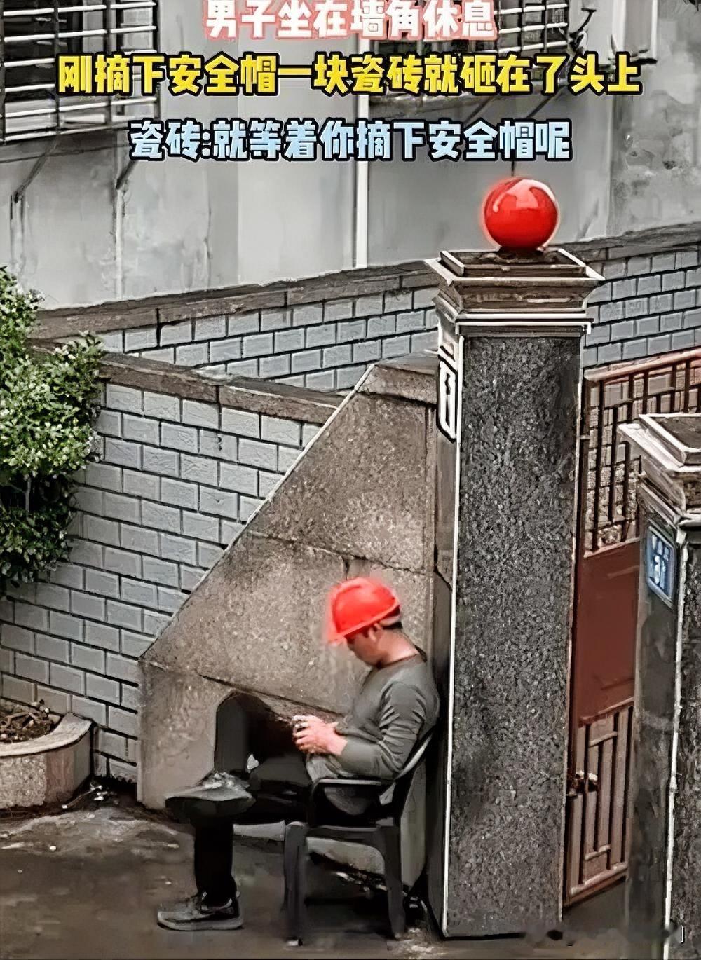 安全帽的“计时器” 监控画面显示,装修师傅在墙角休息时摘下安全帽,瞬间头顶瓷砖脱落砸中头部。这并非巧合,而是对安全意识的警示:施工现场不存在绝对安全时刻。 许多人误以为休息时无需防护,但高空坠物、松动材料等风险无处不在。 安全帽的核心价值在于防御不可控意外,而非仅防操作失误。 这起事故提醒我们:防护装备必须全程佩戴,休息时亦不可松懈。唯有坚持“安全第一”,才能避免悲剧重演。