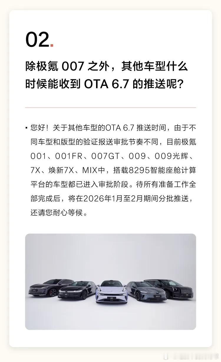 OS6.7的正式推送时间来了,007会优先于1.5开始推送,剩下车型会后续分批推送。俺们007车主终于等来了极氪