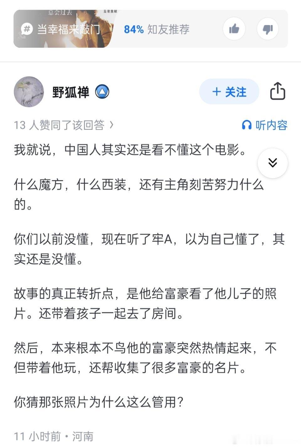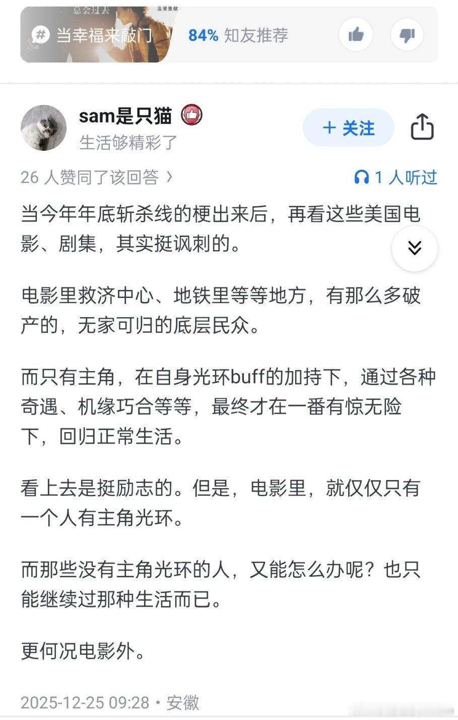 知道美国斩杀线后,再看《当幸福来敲门》以前觉得是励志片,现在觉得是恐怖片。