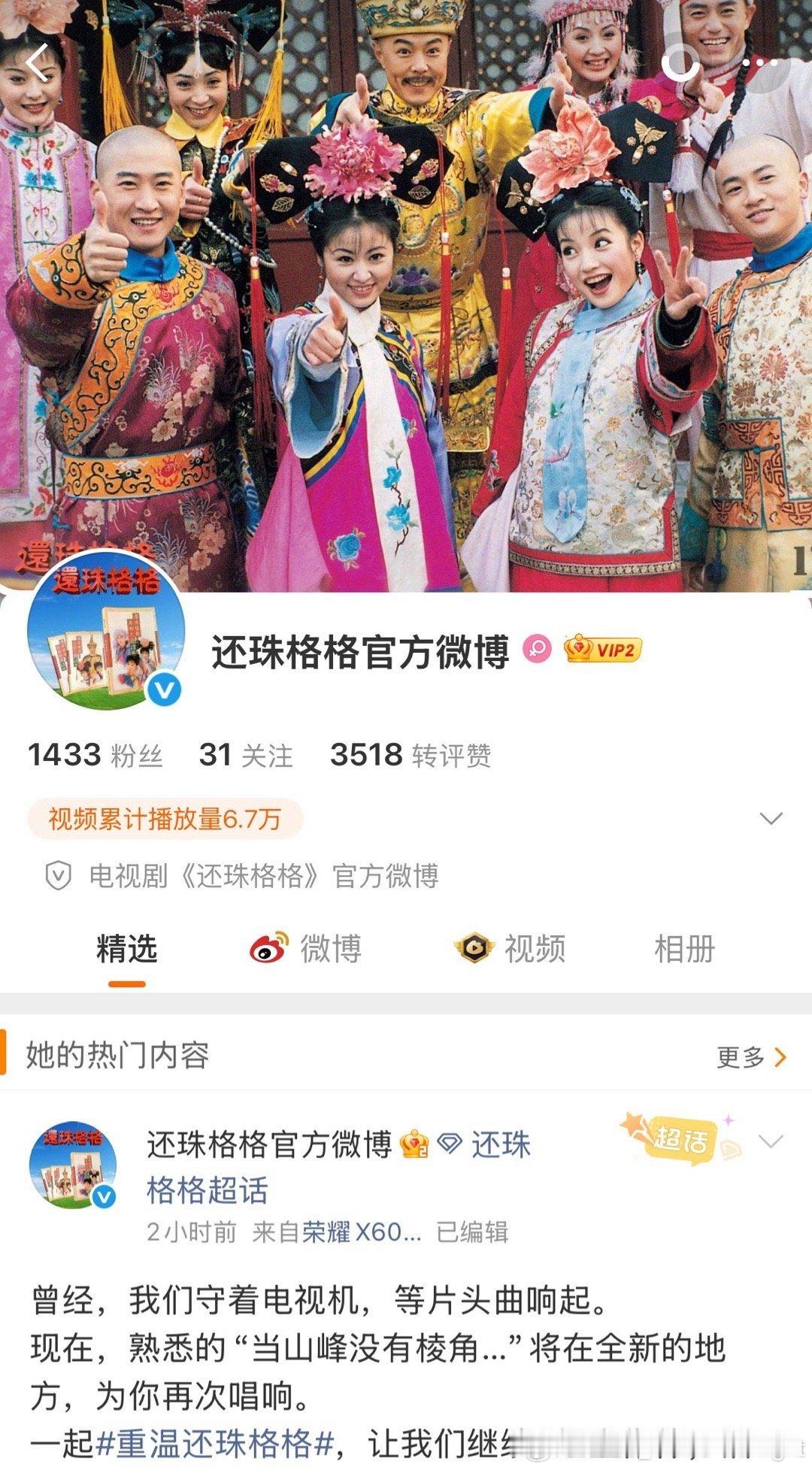 《还珠格格》怎么现在才想起入驻微博,这么多年干嘛去了,感觉是要出衍生品了,先搞一