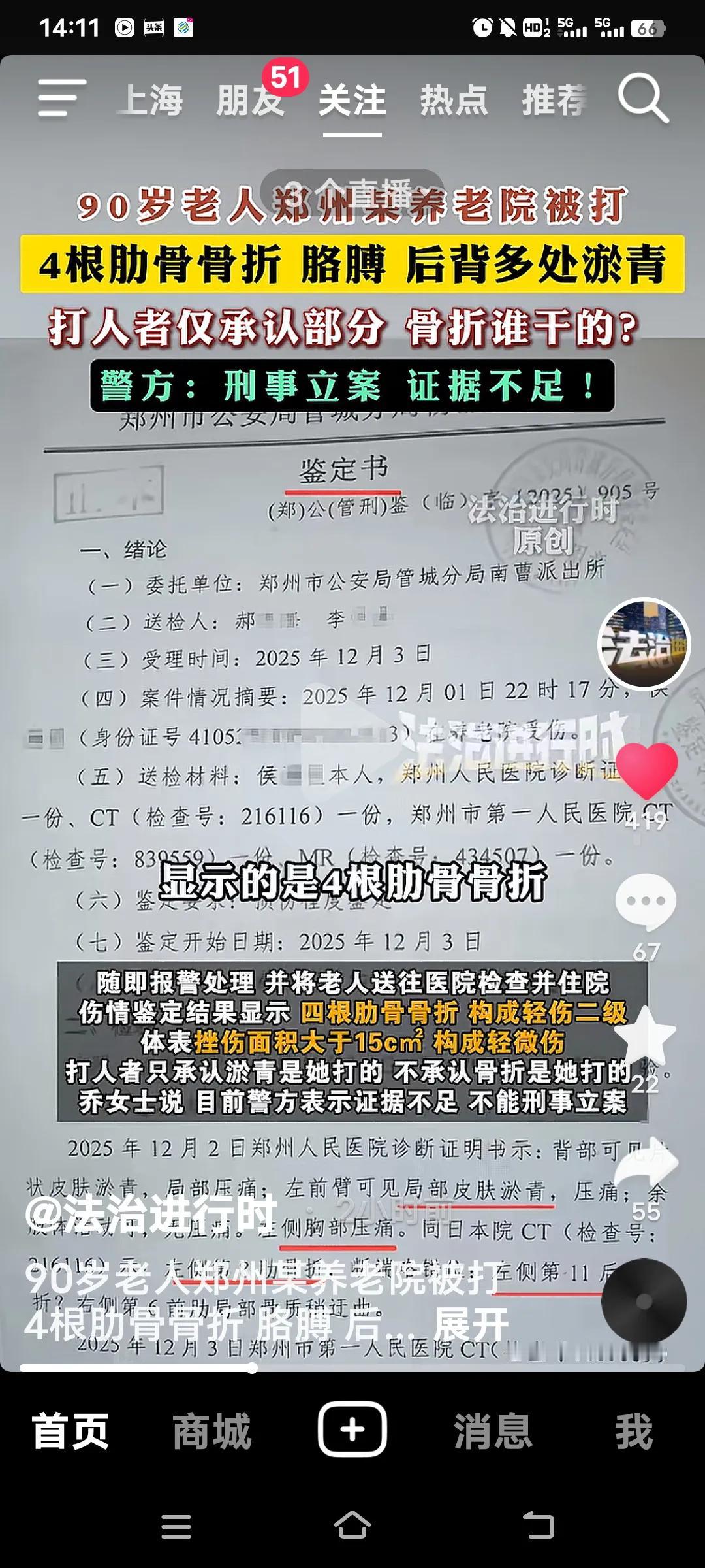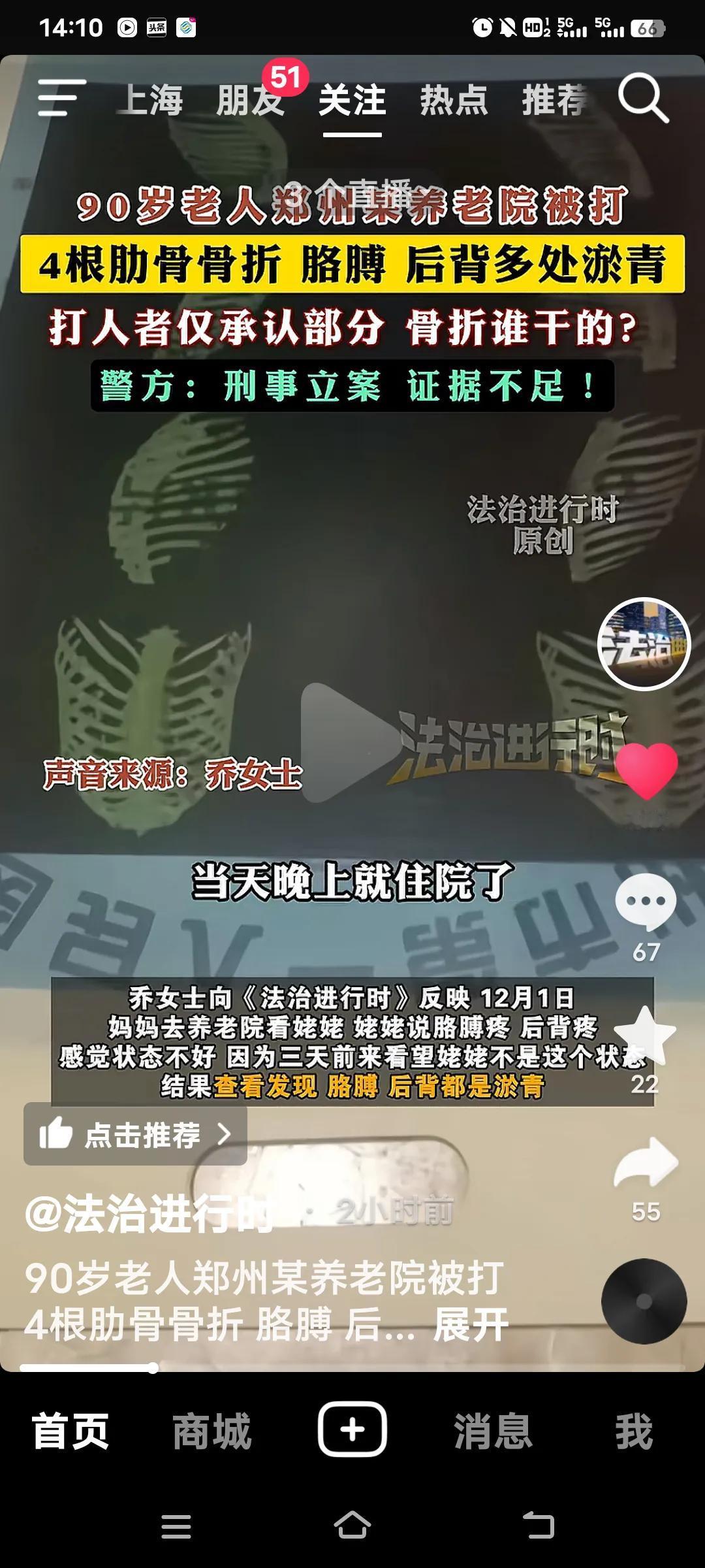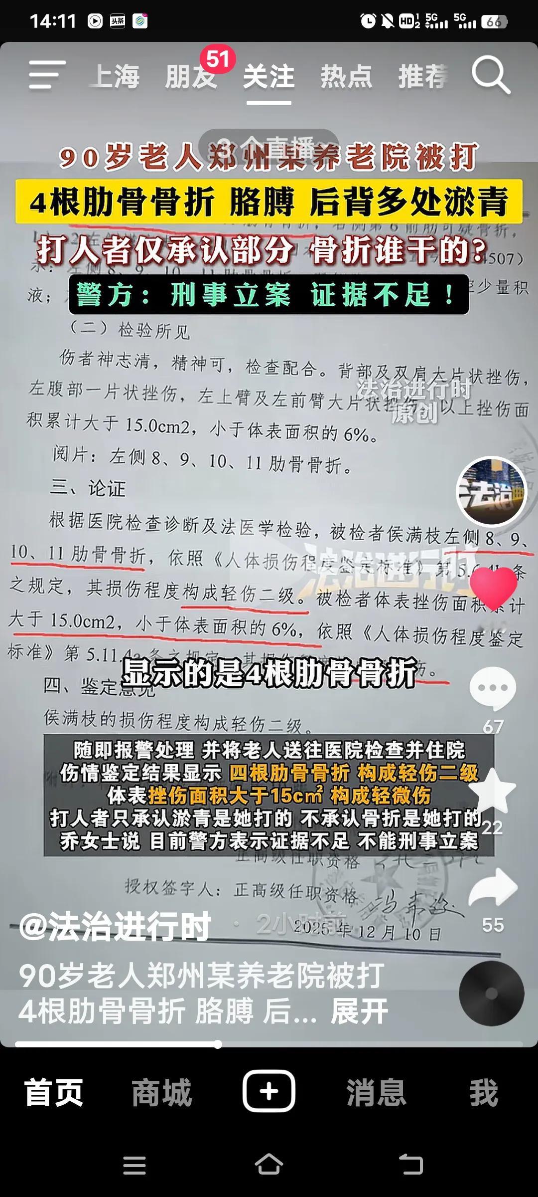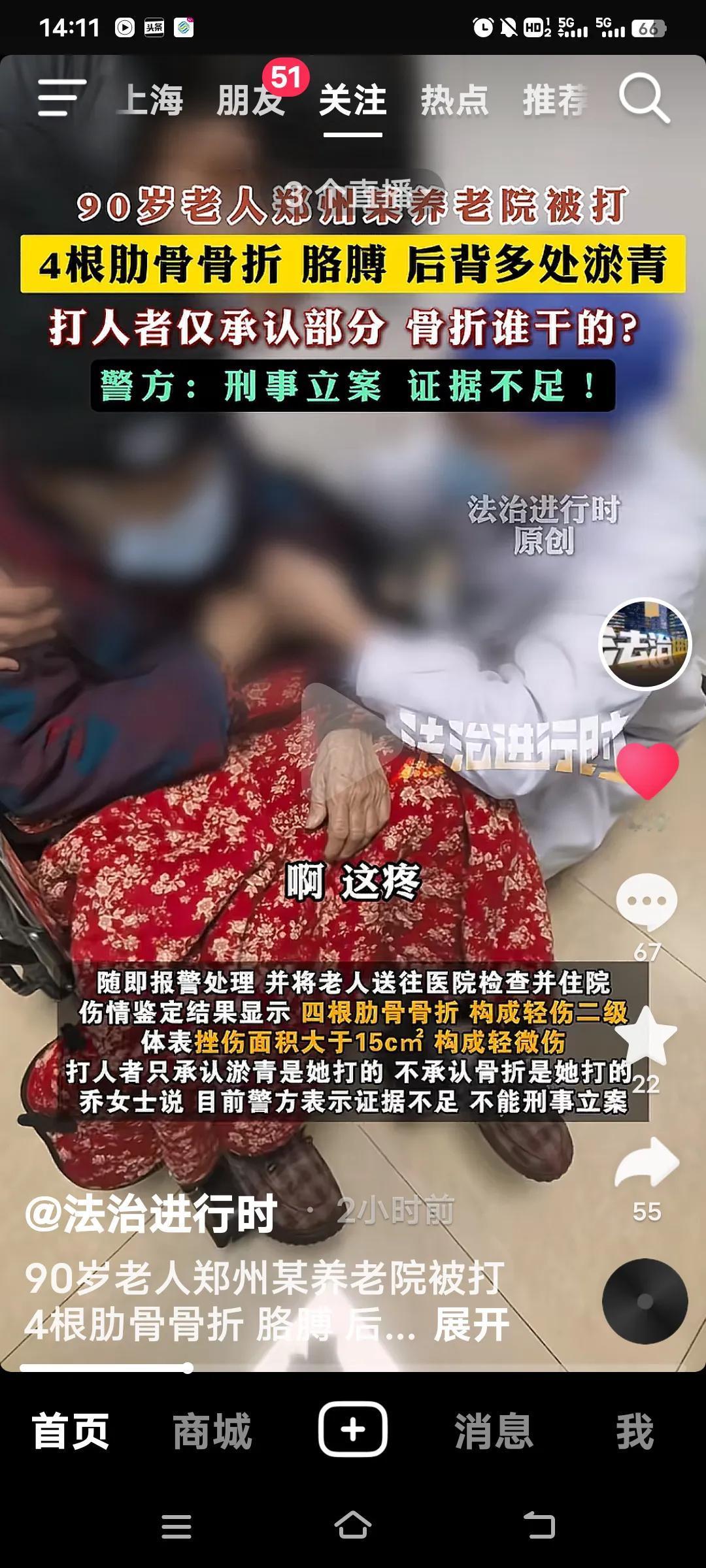 真是士可忍孰不可忍!一位90岁老人在郑州一家养老院被打,导致4根筋骨骨折,胳膊和