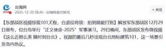 岛内惊呼,大陆军机已进台北,如入无人之境,赖清德行踪成谜?   “台北 101 的玻璃幕墙都能数清纹路了,台军的防空警报在哪儿响?”12 月 29 日,东部战区发布的无人机航拍视频在两岸网络炸了锅。   画面里,台北地标 101 大厦清晰得如同近在咫尺,连楼顶的避雷针都看得一清二楚,而号称 “守护北台湾空防” 的台军系统全程沉默,连个雷达告警的动静都没有。   这可不是普通的无人机 “串门”,而是解放军 “正义使命 - 2025” 联合演习的硬核一幕。当天一早,东部战区就摆开了大阵仗:海军宝鸡舰、太原舰编队在台岛南北海域实弹射击。   两栖攻击舰海南舰带着轰炸机群在东南海域演练封控,火箭军的导弹发射车更是直接进入战斗状态,对着模拟目标搞 “点名打击”。   空军的无人机群就是在这体系支撑下 “突防” 的,用东部战区飞行员的话说:“这哪是‘抵近侦察’,分明是‘上门打卡’,想什么时候来就什么时候来。”   最打脸的是台军那套吹了半年的 “新防线”。今年 4 月美国刚卖了 3 套 NASAMS 防空系统,台媒立马吹嘘 “能拦截解放军所有无人机”,说这系统在俄乌战场 “经受过考验”。   可军事专家早戳破了:这玩意儿在乌克兰也就打打廉价自杀无人机,对付解放军的侦察无人机根本不够看,而且台军要到年底才拿得到货,现在全靠几十年前的老旧装备撑场面。   台军自己统计,当天光是进入 “应变区域” 的解放军军机无人机就有 67 架次,可除了放段 “F-16 锁定歼 - 16” 的老视频撑场面,连一发干扰弹都没敢打。   这边台军防线形同虚设,那边 “台独” 头目赖清德却玩起了 “失踪”。军演当天上午,岛内媒体把电话打爆了都找不到他,直到下午才从其办公室挤出来一句 “国安单位早有掌握”。   网友直接怒怼:“掌握个鬼!你早掌握怎么不拦截?是不是早找好逃跑路线了?” 直到深夜,赖清德才敢在台军社交账号下留言 “不挑起冲突”,可前一天他还在喊 “大陆实力不够”,这翻脸比翻书还快。   这出闹剧其实早有伏笔。今年以来,解放军军机绕台快 3600 架次,台防务部门天天喊 “做好突袭准备”,结果连反无人机系统都搞不定,陆军的采购招标流标两次才搞定,海军的系统还在纸上画饼,空军的 43 亿台币项目更是连影子都没见着。   国防部发言人张晓刚说得明白:“‘台独’挑衅一次,我们就加压一步。” 现在无人机都能俯瞰台北 101,就是给 “台独” 势力递警告:所谓 “防线” 不过是自欺欺人,真要搞分裂,解放军随时能突破任何 “障碍”。   更值得琢磨的是美军的态度。以往台军出洋相,美军总会派舰机来撑场面,可这次 “正义使命 - 2025” 演习期间,西太平洋连艘美军驱逐舰都没见着。   毕竟他们自己也清楚,NASAMS 这种 “打酱油” 的装备,在解放军的体系打击面前就是靶子。赖清德想靠买武器 “以武拒统”,到头来只是给美国送钱,连自己的行踪都藏不住。   台湾是中国领土不可分割的一部分,解放军位台岛周边常态练兵备战,组织反分裂反干涉行动,维护国家主权和领土完整,完全正当必要、合理合法。   解放军打“独”促统不停歇,“台独”挑衅一次我们就加压进逼一步,直至实现祖国完全统一。我们正告民进党当局,认清现实、顺应大势,彻底放弃“台独”分裂图谋,停止一切挑衅引战行径,才是唯一正确的现实选择。   说到底,无人机镜头里的台北 101,既是两岸距离的真实写照,更是 “台独” 势力穷途末路的缩影。赖清德们可以躲一时,但躲不过历史大势;台军可以吹 “防线”,但骗不了岛内民众。   就像东部战区士兵说的:“我们的能力,足够捍卫每一寸国土。” 下次无人机再去台北 “打卡”,说不定能拍到赖清德真正的 “行踪”,不是躲起来,而是乖乖回到谈判桌前。