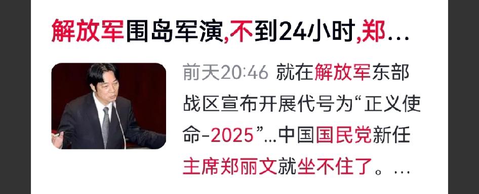 解放军2025”实弹演习,为什么是国民党主席郑丽文率先坐不住了? 民进党为“以武拒统”大增防务预算,却削教育医疗经费,民众早不买账。解放军演习戳中台胞“怕战”软肋,郑丽文趁势要把国民党塑成“和平守护者”,一边骂民进党拿民众性命赌,一边表态国民党能保两岸平安,实则对接主流民意,为2026年选举造势。 演习前她还请王金平出山,获洪秀柱力挺,借机整合党内。对美,她亮明访陆意愿,打破美算盘;对民进党,她抓住对方狼狈回应,直指其无能。美日此次也罕见低调,不再强硬“挺台”。 郑丽文把军事演习变政治契机,为国民党战略转型,重新定义两岸论述,抢话语权,这一波操作可真是快准狠! 对此。你怎么看?欢迎各位读者来评论区讨论,留下你的认知度!