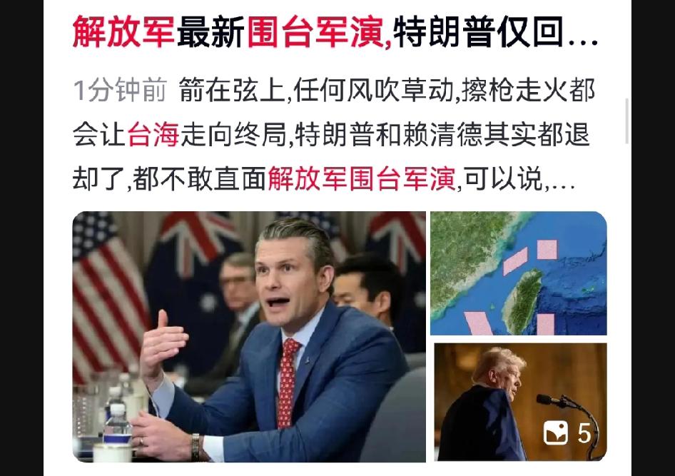 怎么看解放军围台军演?过去美国派双航母压境,现在只敢派发言人喊话? 首先,这一换,彻底暴露美军在西太平洋的底气萎缩——面对解放军全向围岛、体系完备的威慑力量,美军舰机已不敢轻易闯入这片“单向透明”的区域。 其次,从航母威慑到口头声明,这种“载体降级”恰是霸权衰退的写照。美国在弱势对手面前耀武扬威,遇上拥有完整战争体系和反介入能力的中国,便立刻转为“嘴炮模式”。所谓安全承诺,在东风射程内不过是一张空头支票。 第三,事实很清楚:台湾问题的解决主动权,已牢牢握在北京手中。美军再不敢冒进,只能在外围打“口水仗”。这种从硬碰硬到软喊话的转变,你怎么看?
