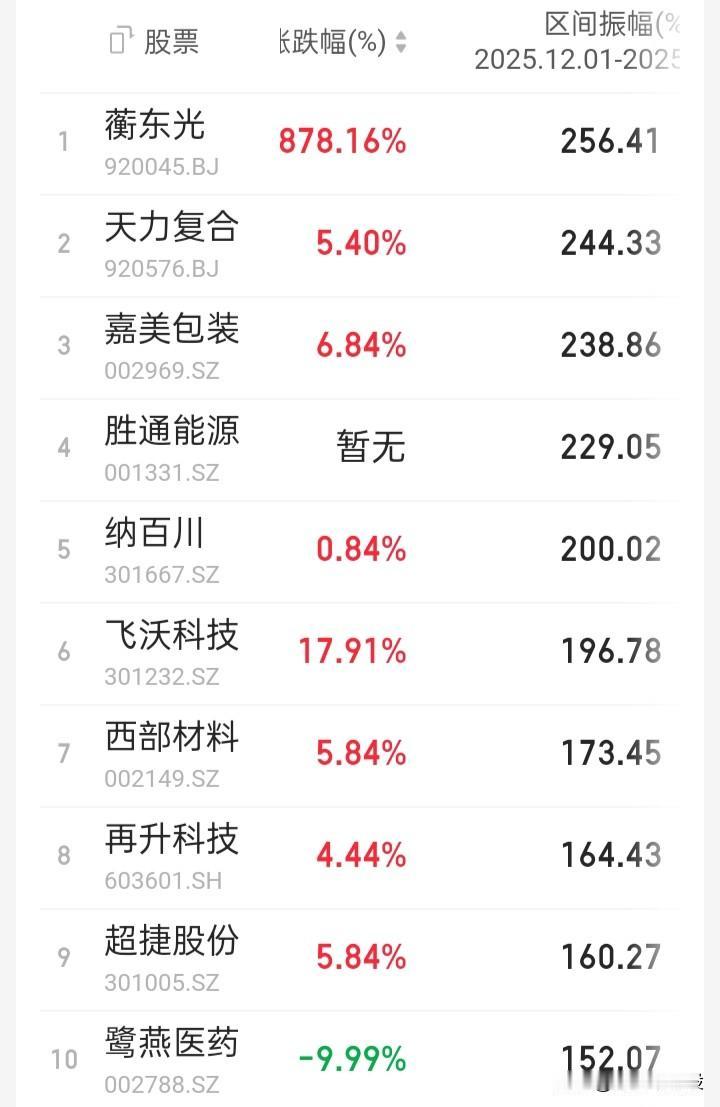 【十二月份A指收官区间观察】“上证”涨2.06%,“深证成指”涨4.17%,“创业板指”涨4.93% 月总市值前十、成交额前十、涨幅前十、跌幅前十、换手率前十、振幅前十 ㊗️友友们新年快乐、阖家幸福、身体健康!并祝股友们明年操作:卖在最高点,买在起飞前,持仓全走牛,天天有涨停!从此告别“关灯吃面”,顿顿“大肉”庆功!财源广进,投资生活双丰收!