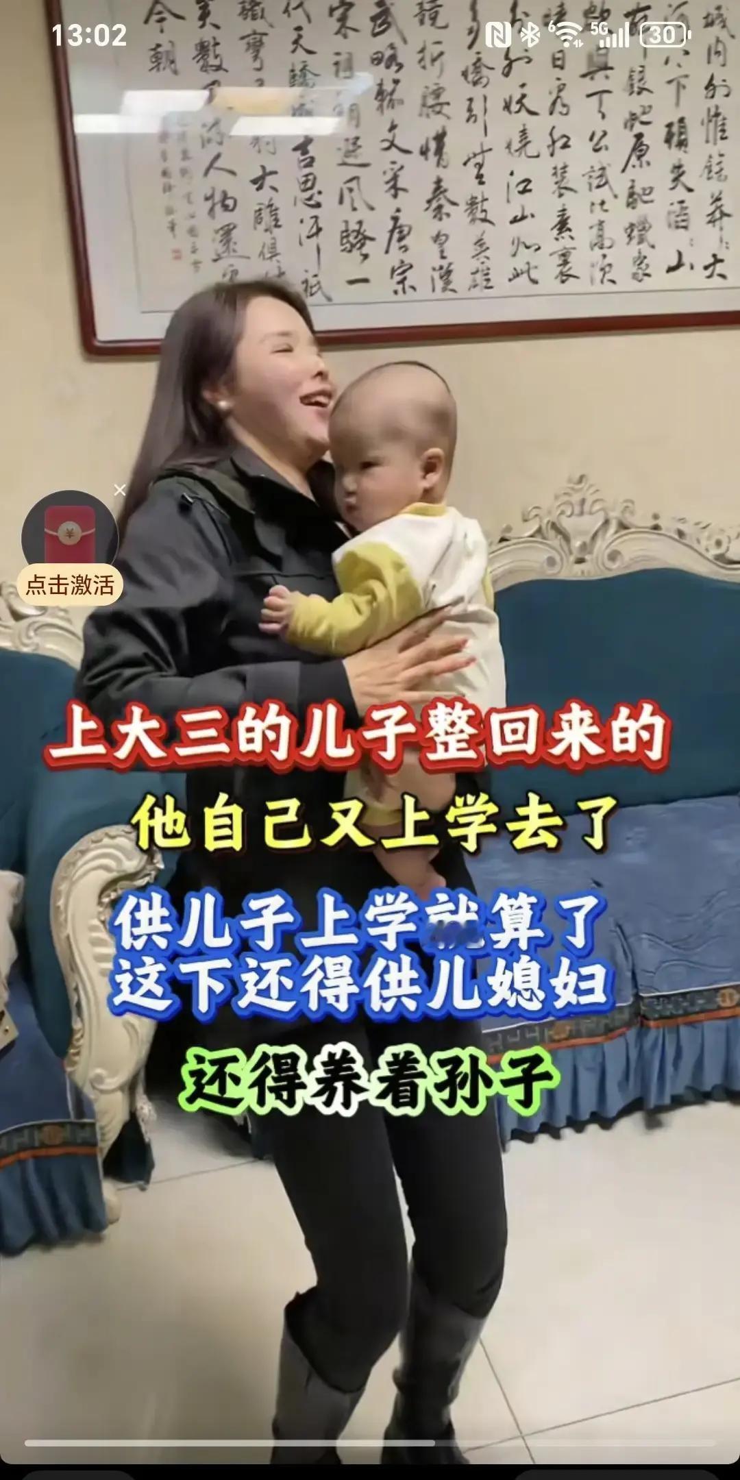 大三的小陈把刚会走路的儿子往老家一扔,让满头白发的奶奶继续当免费保姆。 视频里老
