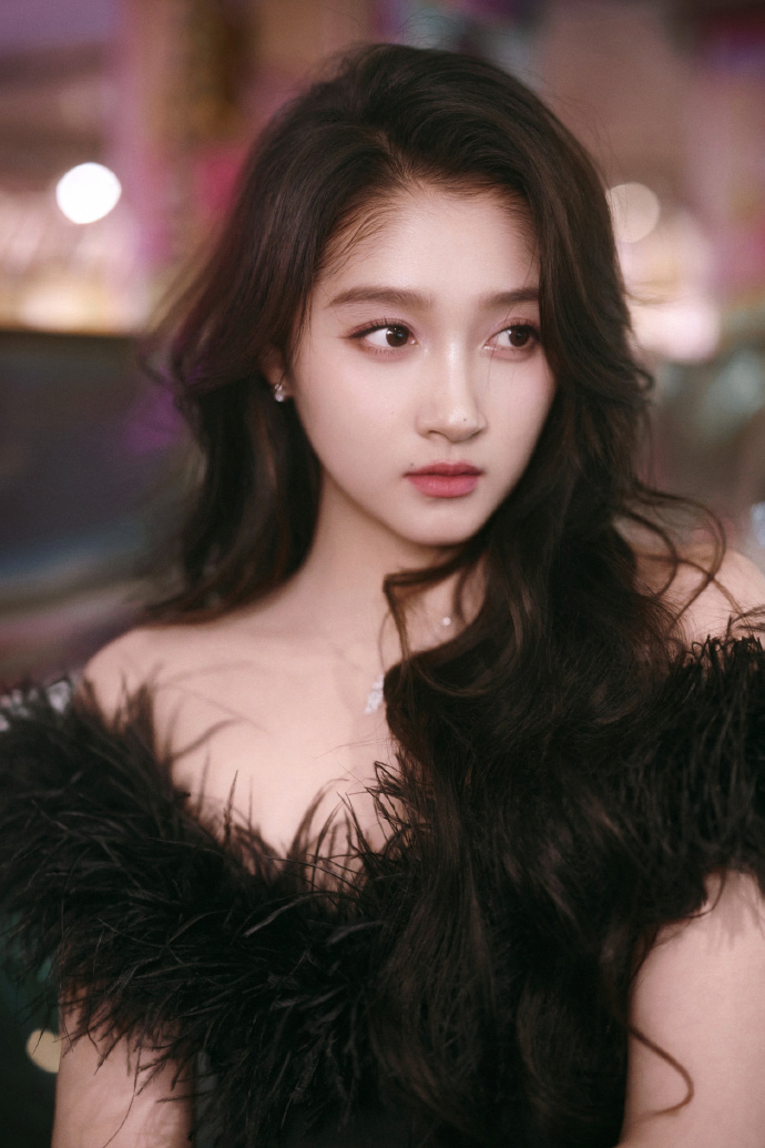 关晓彤羽毛V领黑裙 关晓彤羽毛V领黑裙,关晓彤浙江卫视跨年晚会造型出图,羽毛黑裙造型优雅高贵黑天鹅啊~