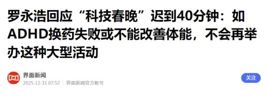 罗永浩凌晨发文称患ADHD:如换药失败,或不能用锻炼彻底改善体能问题,将不再举办大型活动;此前其“科技春晚”迟到40多分钟才出现引热议   “重新定义了 19 点”,12 月 30 日晚,上海那场被称作 “科技春晚” 的分享大会上,罗永浩迟到 47 分钟的身影刚出现在讲台,观众的吐槽声快把直播间弹幕淹了。200 多万在线网友里,有人刷 “退票”,有人骂 “不专业”,没人想到,这场鞠躬道歉的后续解释会来得这么快,也这么沉重。   12 月 31 日凌晨,罗永浩的微博长文像一把钥匙,打开了他那些年 “反常操作” 的锁。“没一场发布会彩排过,全是硬讲”“PPT 永远差 30% 没做完,开场前还在改”,这些听起来像 “摆烂” 的操作,源头竟是 ADHD,注意缺陷与多动障碍。   更揪心的是他透露的细节:有好几次把幻灯片切成两半,交代同事后半段怎么补,自己攥着前半段提心吊胆上台,“全靠体力、经验和时灵时不灵的药撑着”。   这可不是什么 “小毛病”。清华长庚医院的医生解释,ADHD 是神经发育障碍,成人患者最突出的就是注意力散、做事没条理,还容易冲动。罗永浩说的 “PPT 拖到最后”,正是典型的执行功能障碍。   就像脑子里少了个 “任务管家”,明明知道要做,就是没法按计划推进。他吃了十几年的药,比如专注达、择思达这类调节神经递质的常用药,现在吃到最大剂量也不管用了,连体力都跟不上,“连续两三天不睡觉心脏就难受,脑子直接罢工”。   最让人心疼的是他提到的同事:“幕后工作难度全程地狱级,每次结束都要疗伤”。熟悉罗永浩的人都记得,早年前锤子科技的发布会就常出 “状况”。   有次他讲到一半发现 PPT 页码不对,当场笑着自嘲 “这就是没彩排的代价”;还有次开场前半小时,团队还在后台急着改产品参数图。当时大家只当是他 “追求完美”,现在才懂,这背后是 ADHD 患者与自身大脑的拉锯战。   这场 “科技春晚” 的迟到,不过是多年困境的集中爆发。成人 ADHD 患者本来就容易情绪不稳、时间观念差,加上筹备活动的高强度压力,身体早就亮了红灯。   他在文中撂下的话透着无奈:要是换药失败,或者锻炼补不回体能,就不再办大型活动了,“害人害己的事不能干”。   这话里藏着多少挣扎,只有了解 ADHD 治疗困境的人才懂。药物是常用手段,但 30% 的患者对药不敏感,还可能出现心跳快、失眠的副作用。   非药物治疗比如认知行为疗法、正念训练虽有效,却得长期坚持,对常年连轴转的罗永浩来说太难。他寄希望于锻炼,其实有科学依据,运动能促进大脑血液循环,帮 ADHD 患者改善注意力,但体能衰退的现实,可能要给这份希望泼冷水。   网友的反应很快从吐槽变成心疼。有人翻出早年采访,罗永浩说自己 “开会时总忍不住刷手机,必须站着才能集中精神”。   还有前同事爆料,他办公室永远堆着没整理的文件,却能精准记住几年前的产品细节。这些矛盾的表现,全能在成人 ADHD 症状里找到答案:注意力难以持续,但对感兴趣的事能高度专注;执行功能差,却常有突发的灵感迸发。   更值得深思的是,罗永浩的自曝,戳破了大众对成人 ADHD 的认知盲区。很多人以为 “多动症” 是小孩的专利,却不知道 30%-50% 的患儿症状会延续到成年,国内成人患病率约 3%。   这些患者常被贴上 “懒”“不靠谱” 的标签,就像过去的罗永浩,没人会把发布会迟到和 “神经发育障碍” 联系起来。他的坦诚,相当于给千万成人 ADHD 患者做了次科普:这不是性格缺陷,而是需要被理解的疾病。   现在再看那场迟到 47 分钟的发布会,更像一场隐喻。罗永浩站在台上鞠躬的样子,和他攥着半套 PPT 上台时的忐忑,本质上是同一个人,一个和 ADHD 缠斗几十年,靠毅力硬撑的 “战士”。   如果真的不再办大型活动,或许会少了些 “科技春晚” 的热闹,但这份撕开伪装的坦诚,比任何发布会都更有力量。   毕竟,比起看一个人硬撑着 “完美亮相”,我们更该学会看见那些 “不完美” 背后的真实与艰难。罗永浩的抉择,既是对自己身体的妥协,也是对公众认知的唤醒,这或许才是他这场 “深夜坦白” 最珍贵的价值。