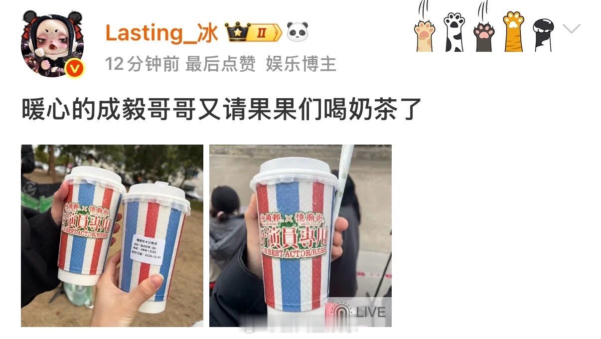 成毅请粉丝喝了跨年奶茶成毅请粉丝喝跨年奶茶成毅跨年又请粉丝喝奶茶