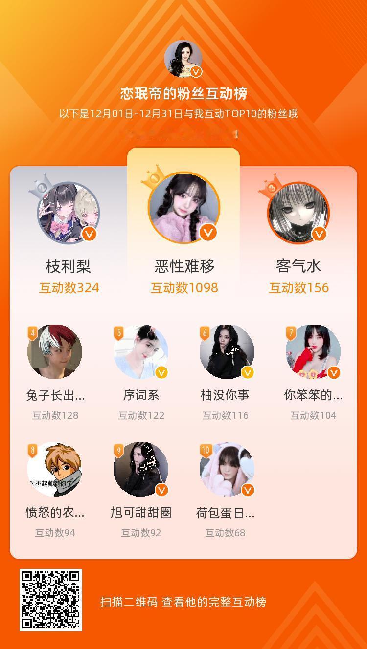 、、 等,你们是我本月排名TOP10的粉丝,感谢你们的陪伴与支持,期望一直都有你们的相伴~