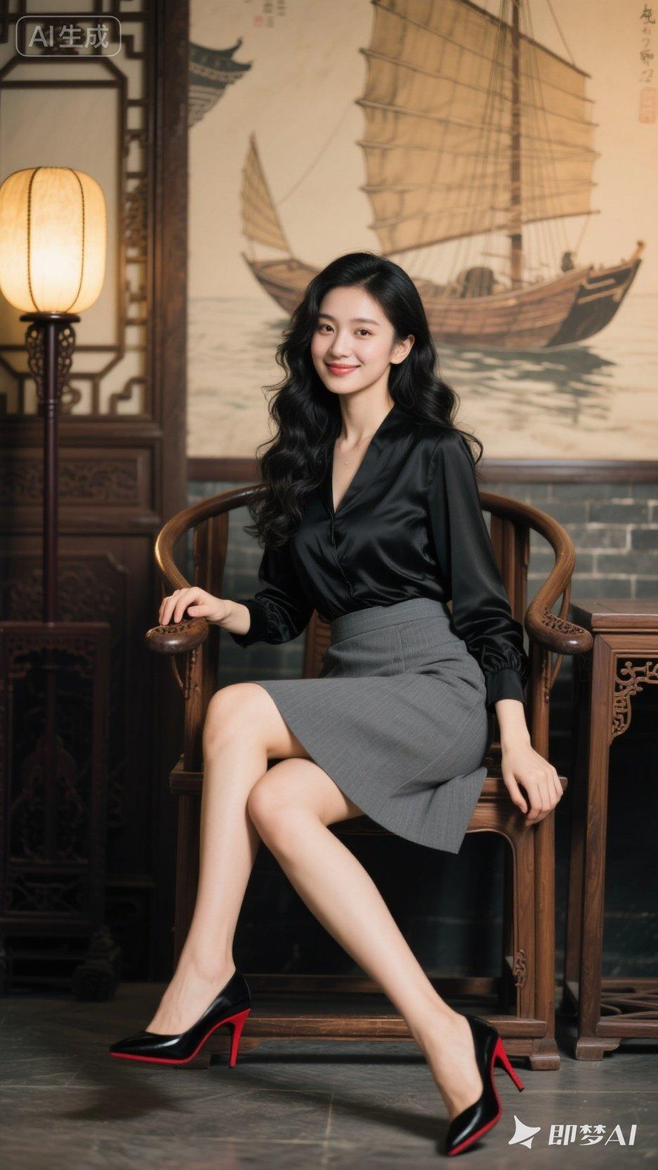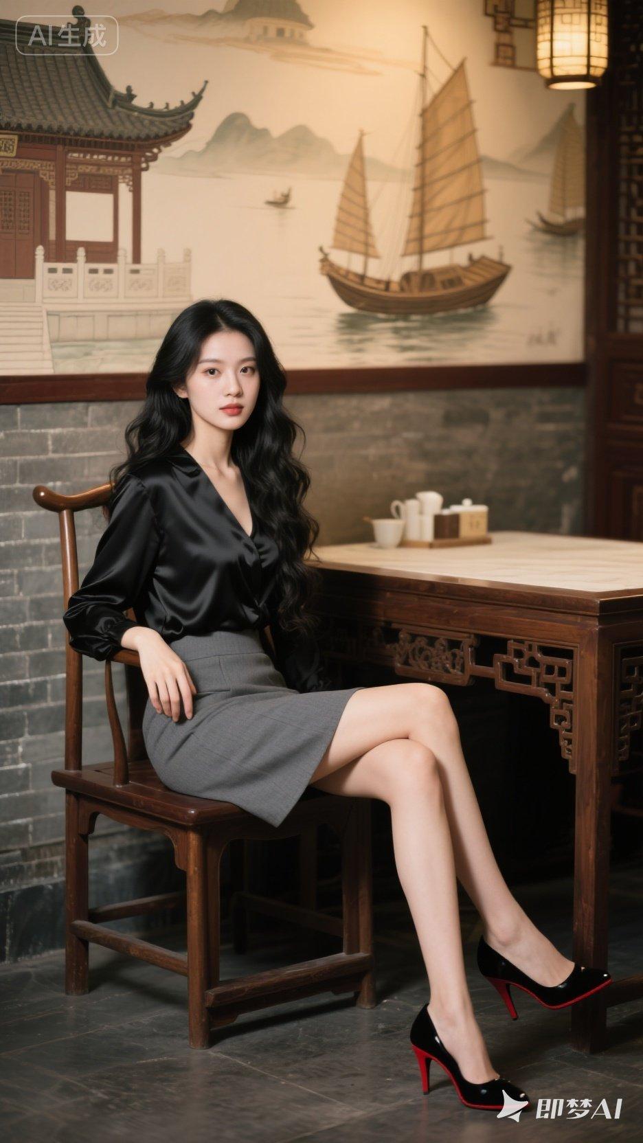 优雅东方韵味,黑丝绒与灰色裙的完美搭配,尽显现代与古典的交融。