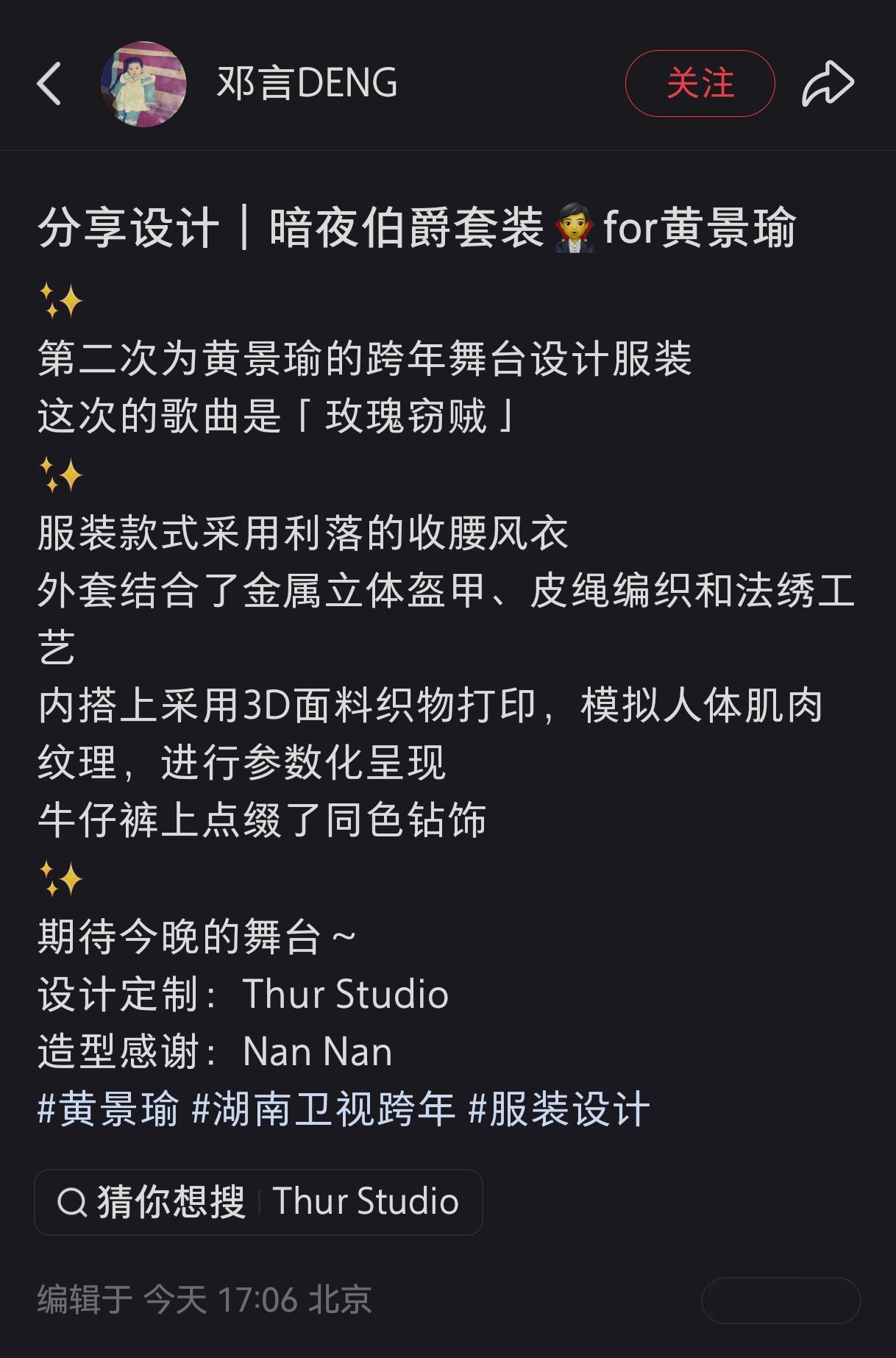 湖南卫视跨年节目单期待一下黄景瑜今晚的舞台🌹今天的妆造好多细节,戴了耳骨夹,还
