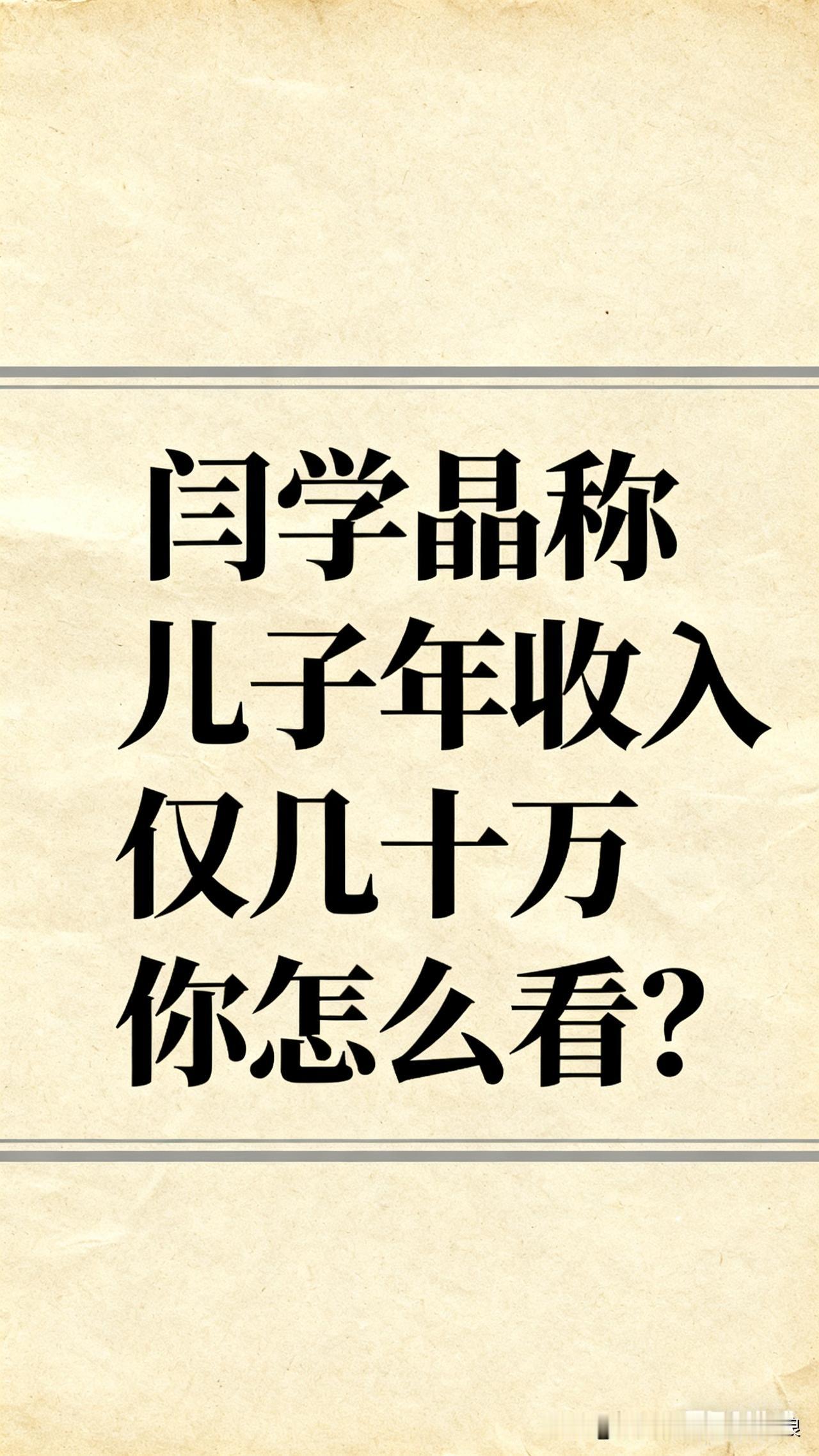 咱就直说了,闫学晶这波“哭穷”真是戳中了普通人的痛点! 她说32岁儿子年入几十万、儿媳年收入不到十万,在北京不够支撑百万开支,还觉得这日子难。可咱普通人呢?好多人一年挣五六万就拼尽全力,外卖小哥风里来雨里去月薪才几千,普通白领996加班一年也未必到十万,几十万在咱这儿是遥不可及的天花板,到明星嘴里就成了“不够花”? 关键这“不够花”是啥概念?北京普通家庭年开销二三十万就够过,她口中的百万开支,是豪宅房贷、保姆工资、奢侈品消费这些非必需的高端开销。更讽刺的是,她儿子作为星二代,有妈妈铺路拿资源,演部戏就能赚几十万,这可是无数横店群演、普通打工人一辈子都赚不到的数。 不是不能心疼儿子,而是别脱离现实对着普通人哭穷。你家的“压力”是维持奢侈生活,咱普通人的压力是房租、学费、医药费,这根本不是一回事。真要是觉得开销大,不如少点排场、量入为出,别一边晒着满桌山珍海味,一边让月薪几千的网友同情年入几十万的“难处”,这凡尔赛式哭穷,实在让人共情不起来! 闫学晶 图片由AI生成