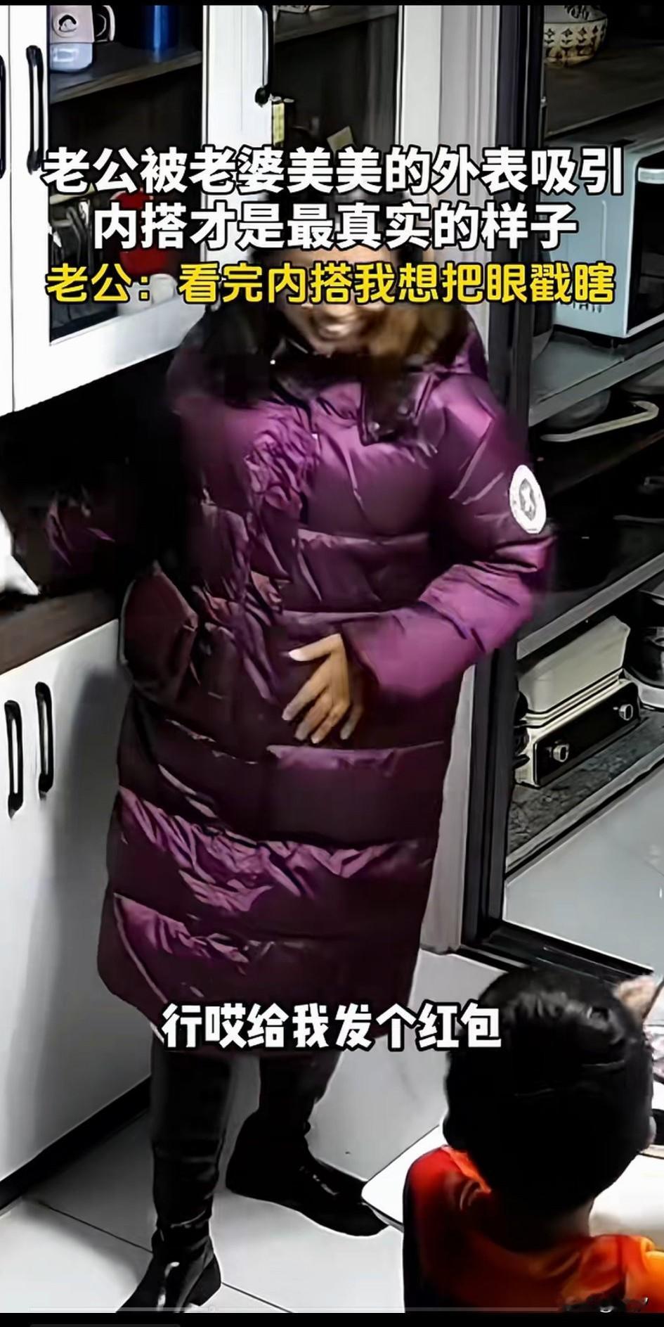 山东女子出门拿了个快递, 回来后看到老公在玩手机, 儿子正在玩游戏, 说了声外面真冷啊, 玩手机的老公看了一眼老婆, 夸他老婆今天穿的真漂亮, 完全是被美美的穿搭所吸引, 老婆听到后开心不? 问她想不想看里面穿的什么? 那就给他转100块钱, 老公由于好奇于是就答应了, 你在玩游戏的儿子听到后, 提醒自己的老爸小心杀猪盘, 杀猪盘就是专坑熟人。 他的老爸听到后不屑一顾, 尽快给他妈妈转了100块钱, 他的妈妈收到钱后, 也非常的守信用, 解开黄色的大衣, 露出了里面的穿搭, 里面居然穿了一个睡衣, 这下亏大了, 老公看到后, 肠子都悔青了, 于是生气的起身去了卧室, 网友表示看到内搭后想把眼睛戳瞎! 虽说没有看到想看的, 但是里面穿个睡衣不合适吧? 大家对于山东姑娘这么大大咧咧怎么看? 婚姻与家庭 夫妻那些事 山东女子 山东女子网购