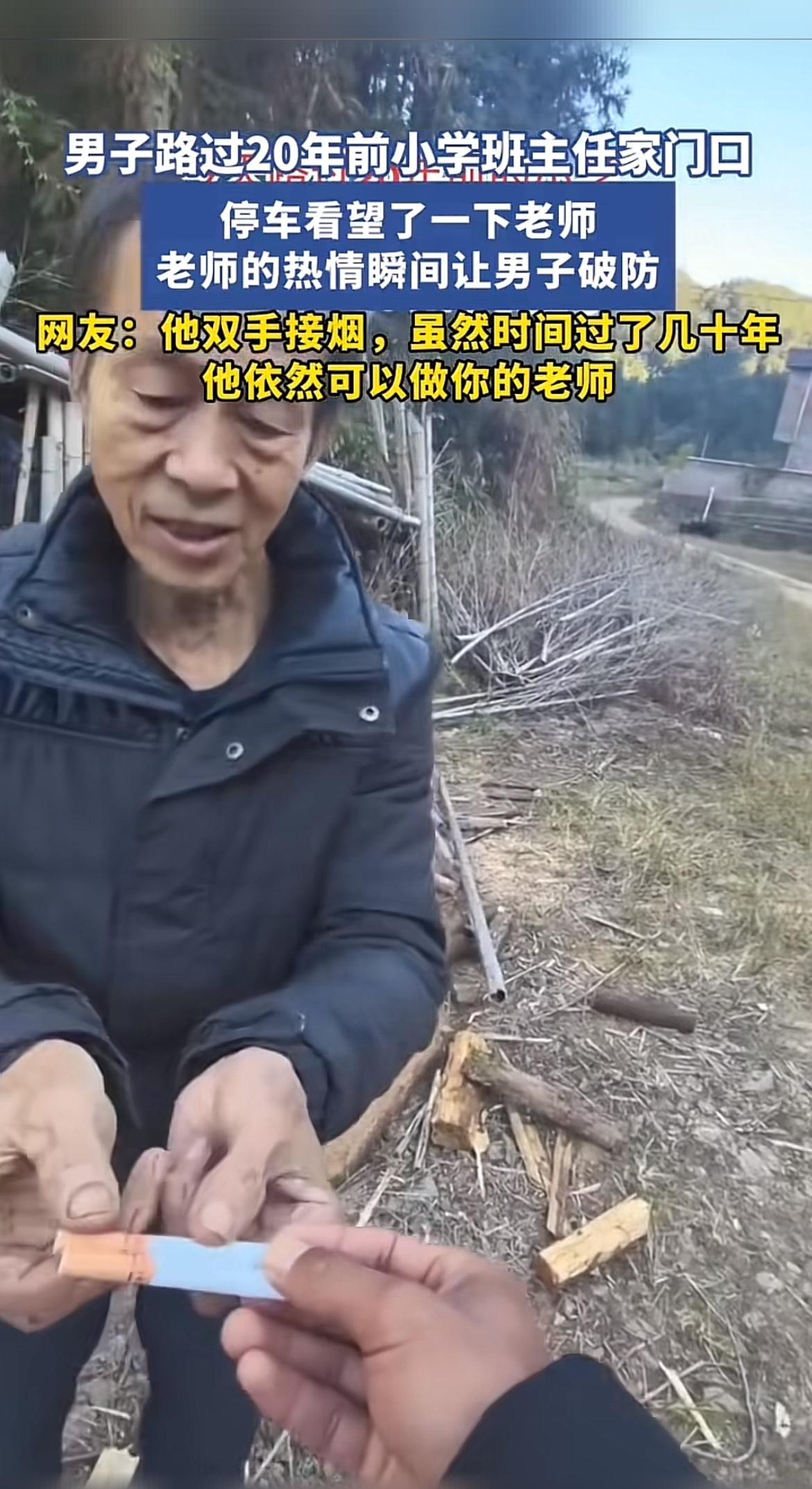 20年的时间能改变很多,可有些情谊却始终如初。有个男子去探望20年前的小学班主任,老师进屋泡茶,还双手敬烟,那彬彬有礼的模样让人动容。男子双手接烟的瞬间泪目,或许是想起了曾经老师的谆谆教诲,那些年的师生情涌上心头。 不过,并非所有的重逢都是温馨的。还有男子大街上遇到20年前班主任,直接狂扇几十巴掌,边打边质问当初是怎么抽他的。同样是20年后重逢,境遇却天差地别。但我觉得,大多数师生重逢还是像前者那样,满是温情,让人珍惜这跨越20年的缘分。