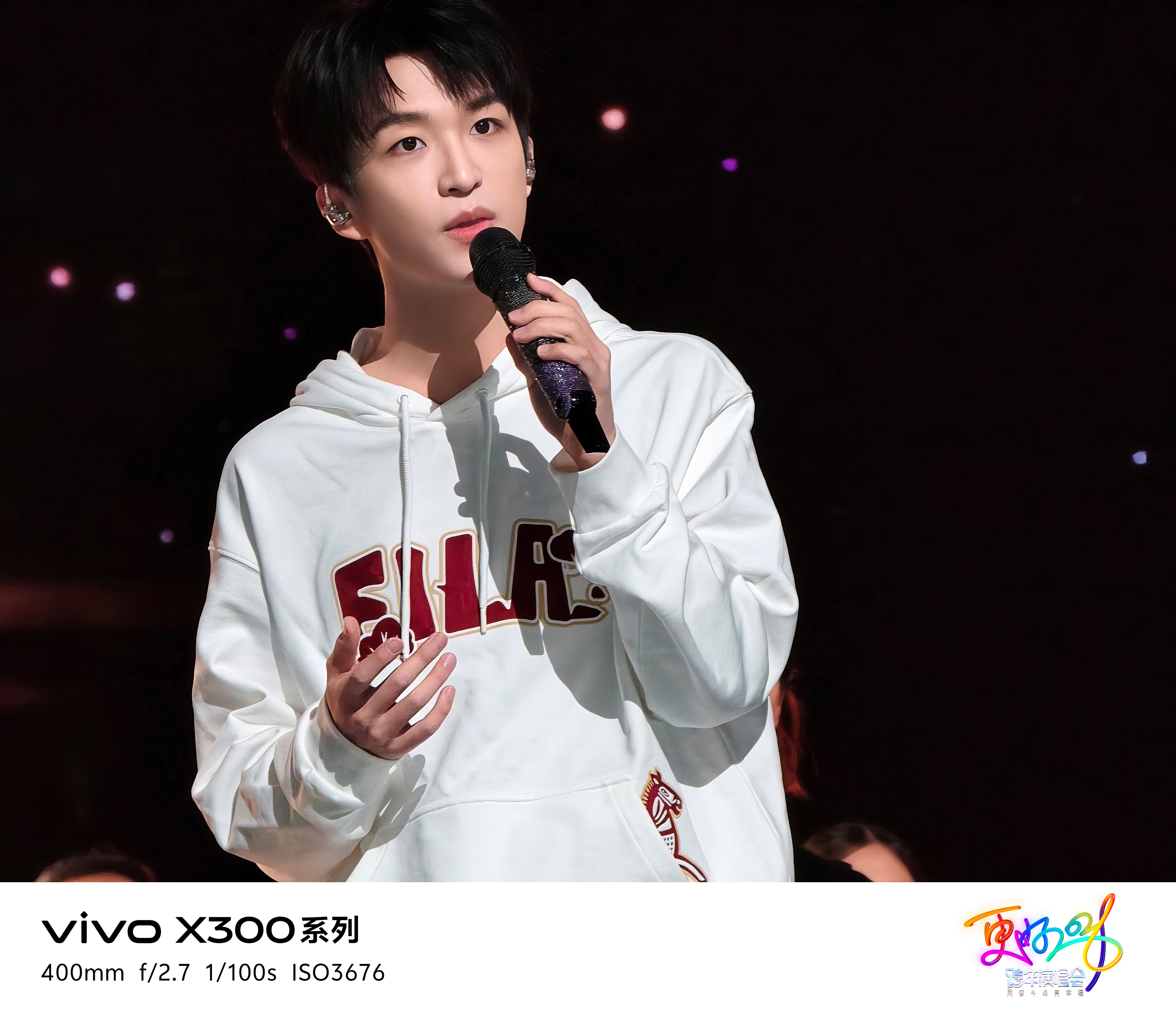带着vivo X300去跨年vivo X300系列 演唱会神器的含金量啊,江苏卫视跨年 晚会的现场图,vivo X300系列还是太全面了。搭配增距镜,哪怕坐在后排,歌手的妆造细节都拍得清清楚楚。而且晚会现场灯光那么复杂,拍出来的画面还挺干净,色彩也很真实。